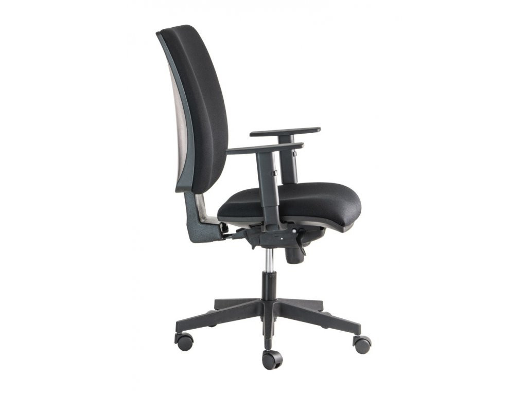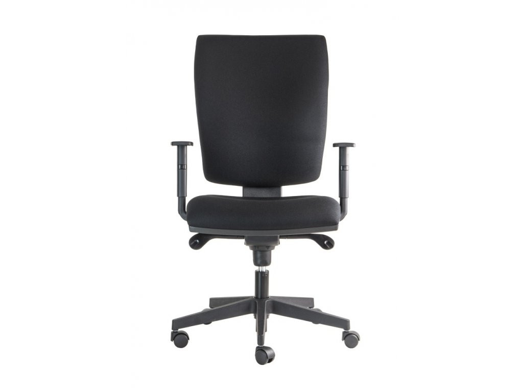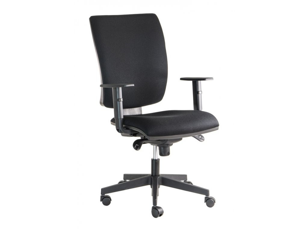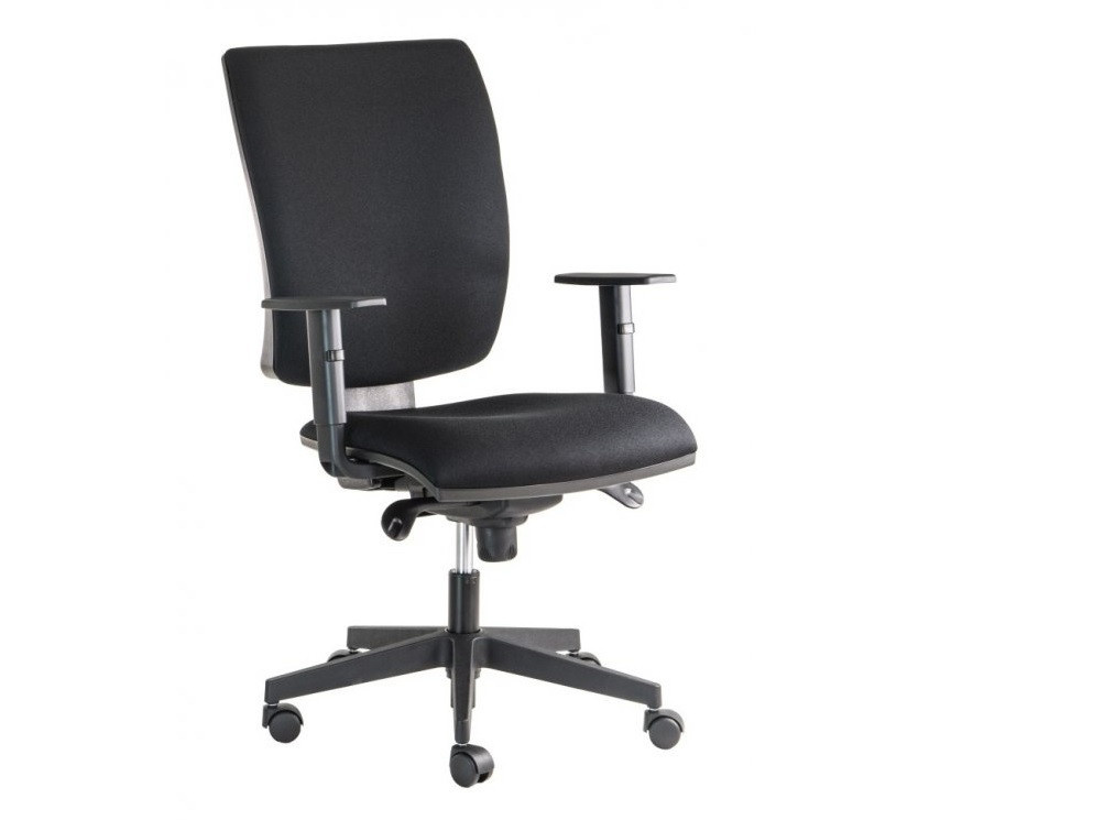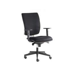 Kvalitní kancelářská židle LARA šéf se širokou zádovou opěrou má ve výbavě synchronní mechaniku s možností blokace v 5 polohách s nastavením tuhosti přítlaku zad. Židle je posazená na kvalitním nylonovém kříži a je doplněná výškově nastavitelnými područkami s plastovým topem.