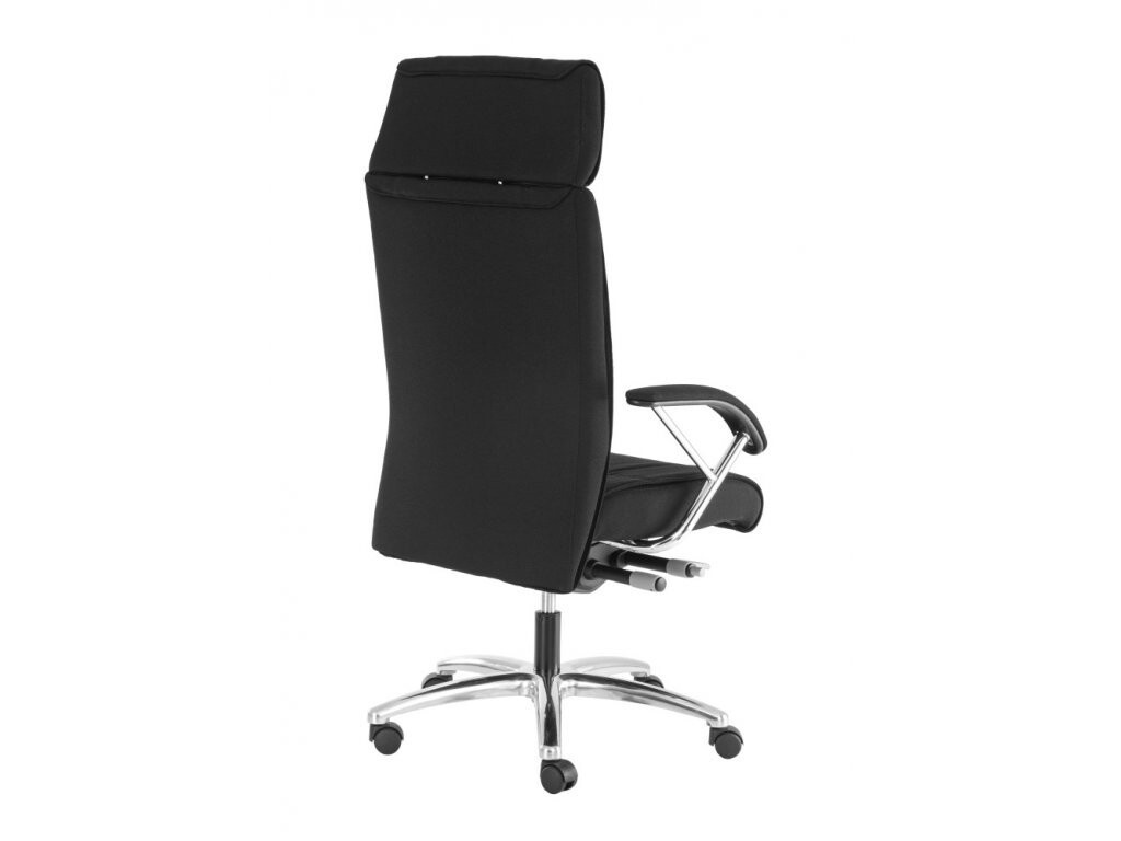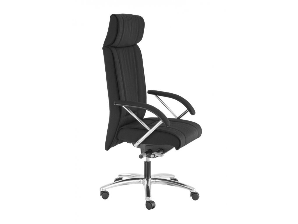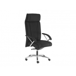 Kvalitní Top manažerské elegantní křeslo s vysokým opěrákem a čalouněnými područkami s chromovými doplňky. Je vybaveno kvalitní synchronní mechanikou s blokací v 5 polohách s bočním nastavením tuhosti přítlaku zad. Křeslo je posazené na robustním hliníkovém kříži.