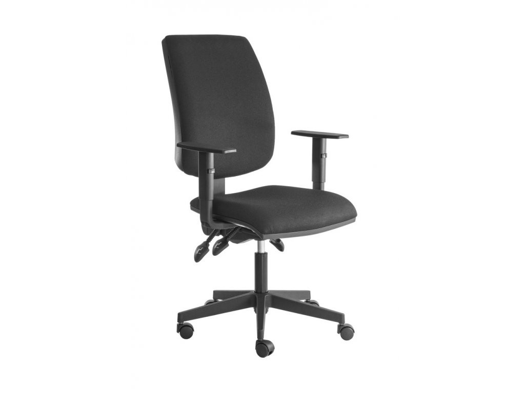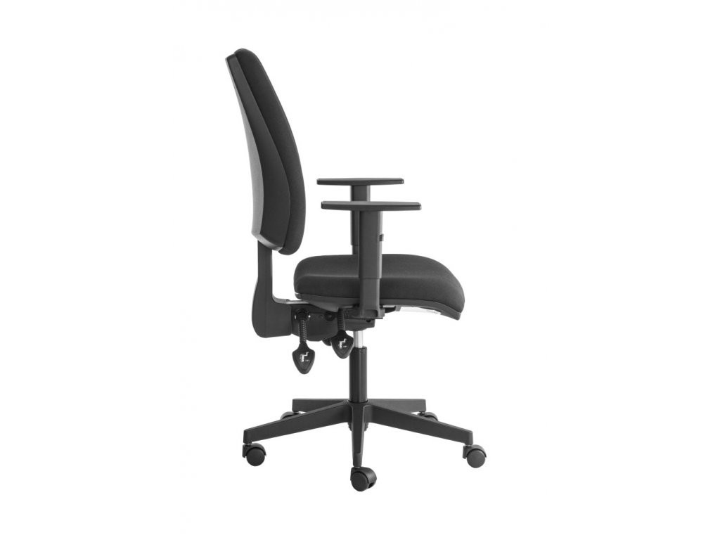 Kvalitní kancelářské židle YORK je s kvalitní asynchronní mechanikou, umožňující samostatné nastavení úhlu sedáku a úhlu opěráku. Opěradlo je výškově nastavitelné. Součástí židle jsou výškově nastavitelné područky s plastovým topem a černý nylonový kříž s plastovými kolečky na koberce.