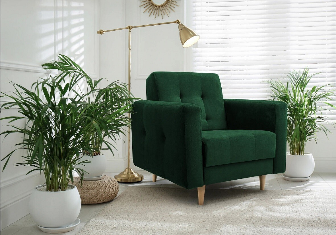 Křeslo LIZBONA Zelené, Kronos 19, Přírodní dřevo