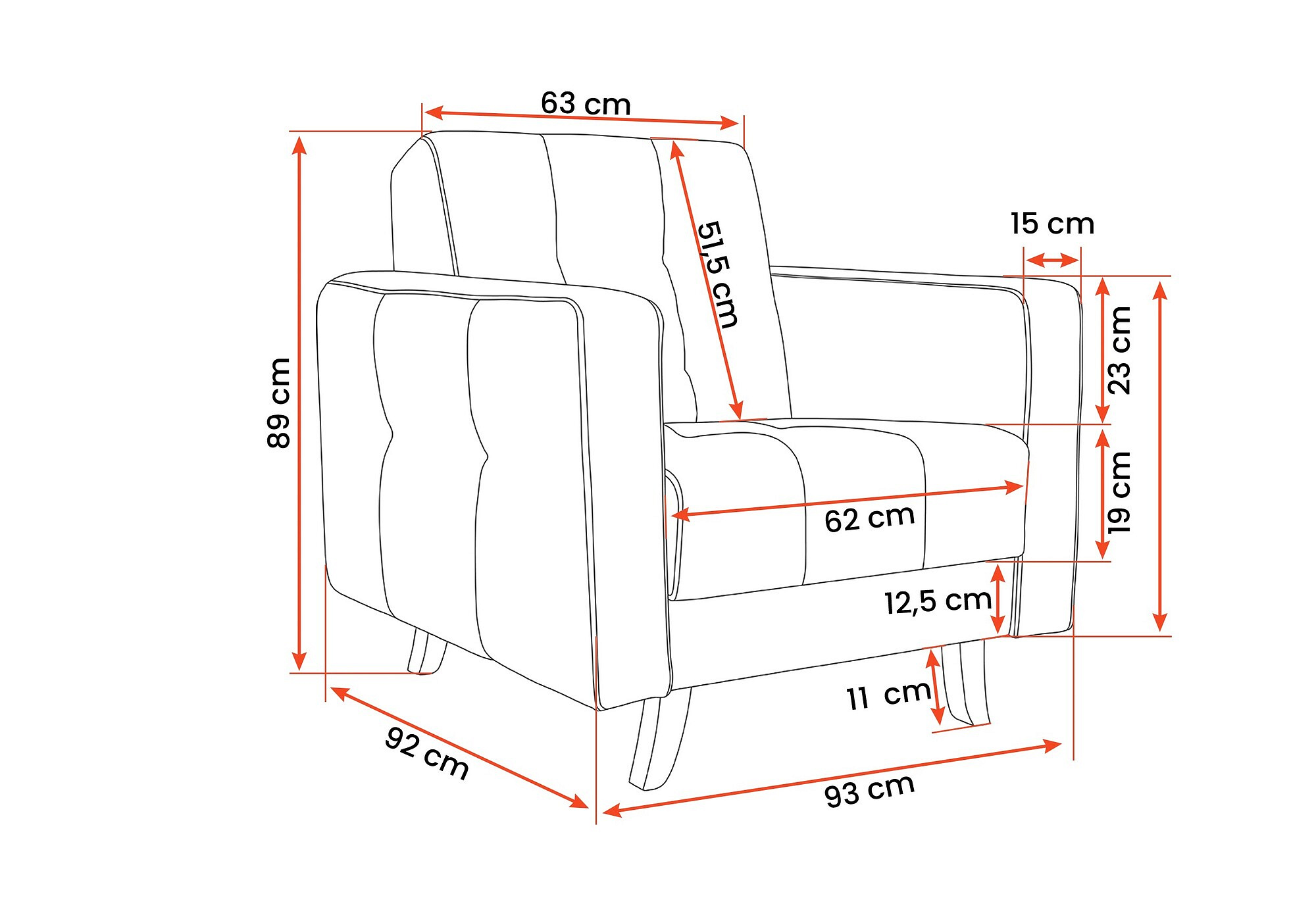 S šířkou 94 cm, maximální výškou 89 cm a hloubkou 92 cm nabízí křeslo LIZBONA dostatek prostoru pro pohodlné sezení. Jeho ergonomický tvar podporuje správné držení těla, což je ideální pro dlouhé hodiny relaxace nebo čtení vaší oblíbené knihy.