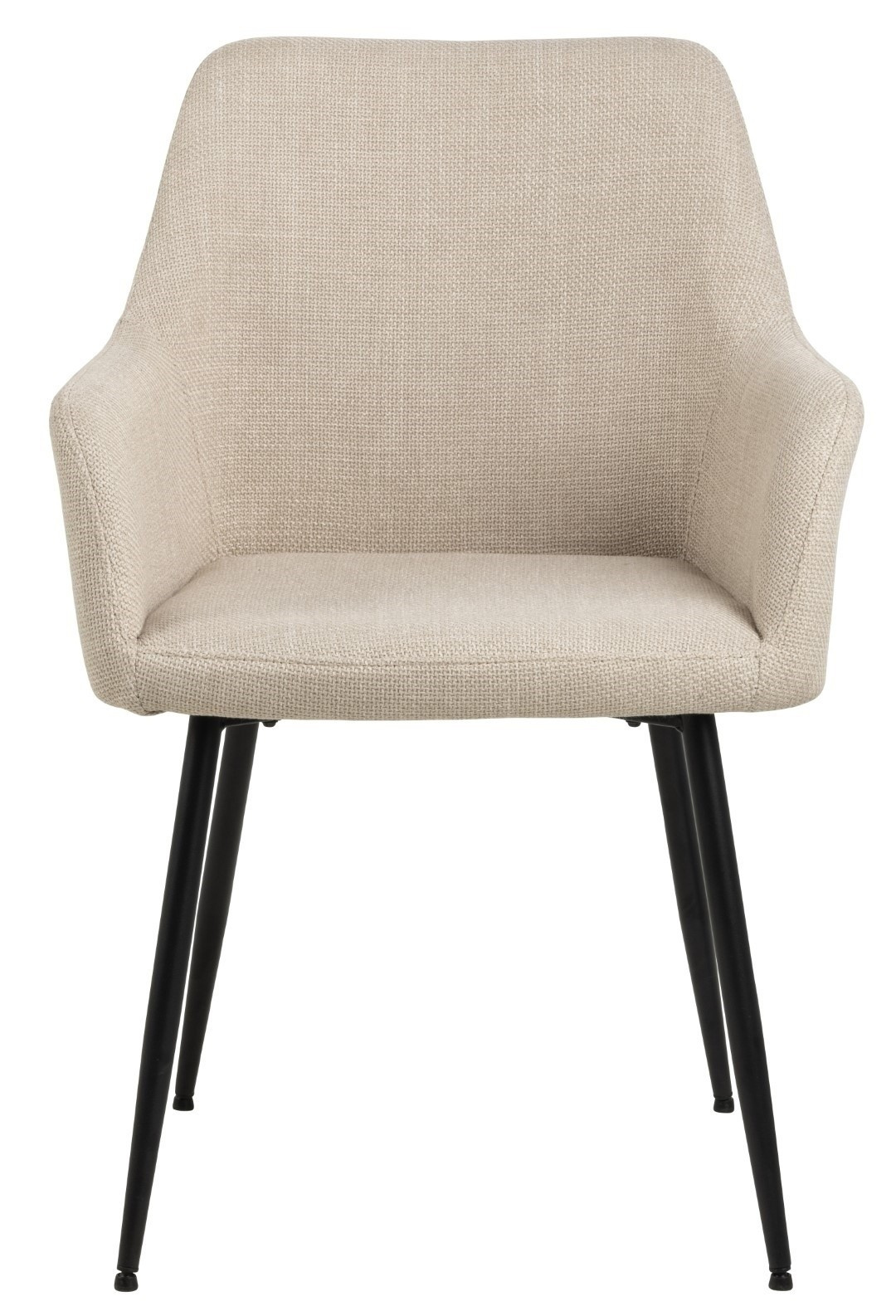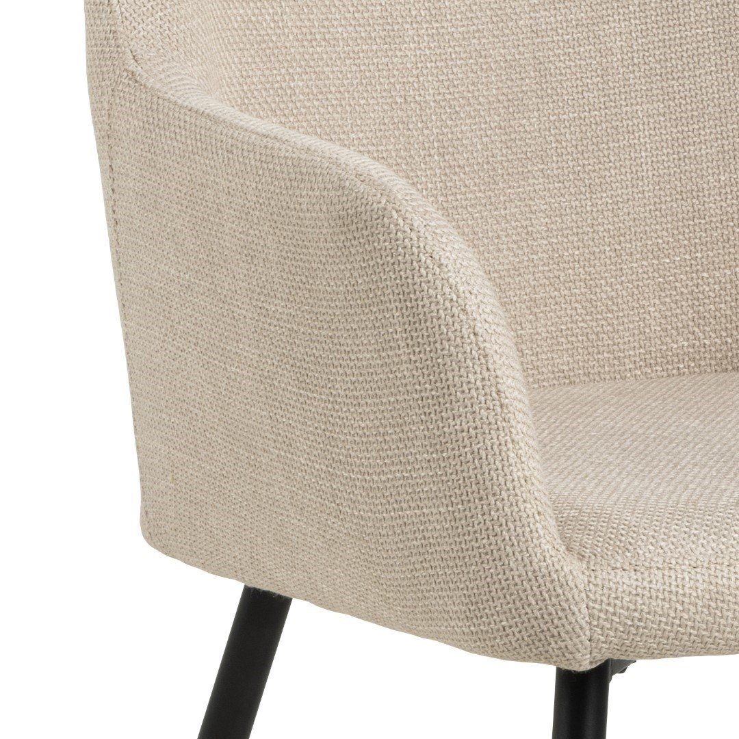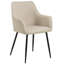 Židle do jídelny Lizzy s područkami potažená látkou Basel béžová 24 je vyrobena z černé matné práškově lakované základny a má zip na zadní straně čalouněného opěradla. Charakterizované nadčasovou elegancí, klasické křeslo s područkami je čalouněné silnou béžovou látkou s dvoubarevným efektem. Dodává to projektu pěkný, uspořádaný vzhled. Doplněné štíhlými nohami z černé oceli, židle získává univerzální vzhled, který se hodí do různých stylů jídelen. Hlavní vlastnosti: Jídelní židle s područkami s elegantním a univerzálním vzhledem, čalouněná strukturovanou látkou v béžové barvě s dvoubarevným efektem. Max. zatížení 110 kg. Židle vyžaduje montáž. Hmotnost židle: 5,3 kg. Šířka sedáku: 42,5 cm Hloubka sedáku: 44 cm Výška opěradla: 39 cm Výška područek od sedáku: 17 cm. Hloubka područek: 30 cm Max. 2 ks v kartonu Karton: 60x60x52 cm