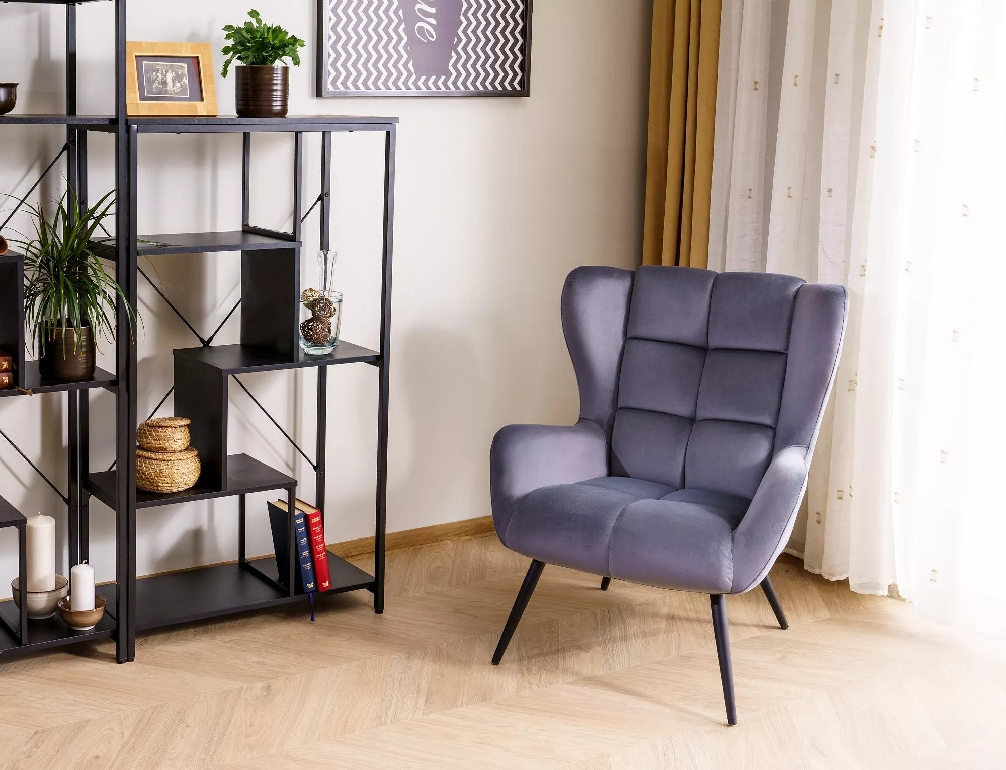 Křeslo LOUIS VELVET, Šedý Bluvel 14/Černá