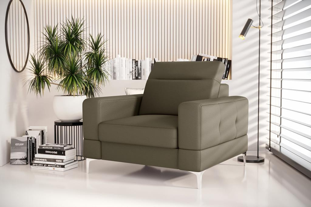 Křeslo MALIBU 104 cm přírodní kůže - Olivová kůže