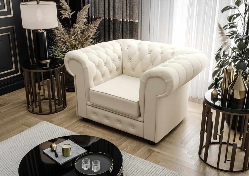 Křeslo MANCHESTER přírodní kůže - Kůže ecru