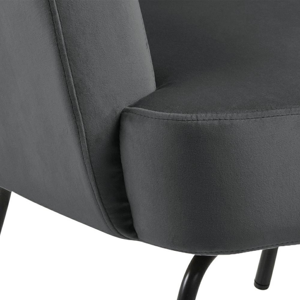 Křeslo Felissa je elegantní nábytek ve stylu glamour. Čtyři kovové, práškově lakované nohy jsou zespodu opatřeny speciálními krytkami. Sedák a opěradlo jsou vyrobeny z polyuretanové pěny. Křeslo je čalouněné příjemnou na dotek látkou VIC fabric dark grey 28. Má pohodlné opěrky na ruce. Křeslo Melissa je ideální do obývacího pokoje nebo čekárny v kanceláři. Rozměry: 75x75x83 cm Hmotnost: 12 kg
