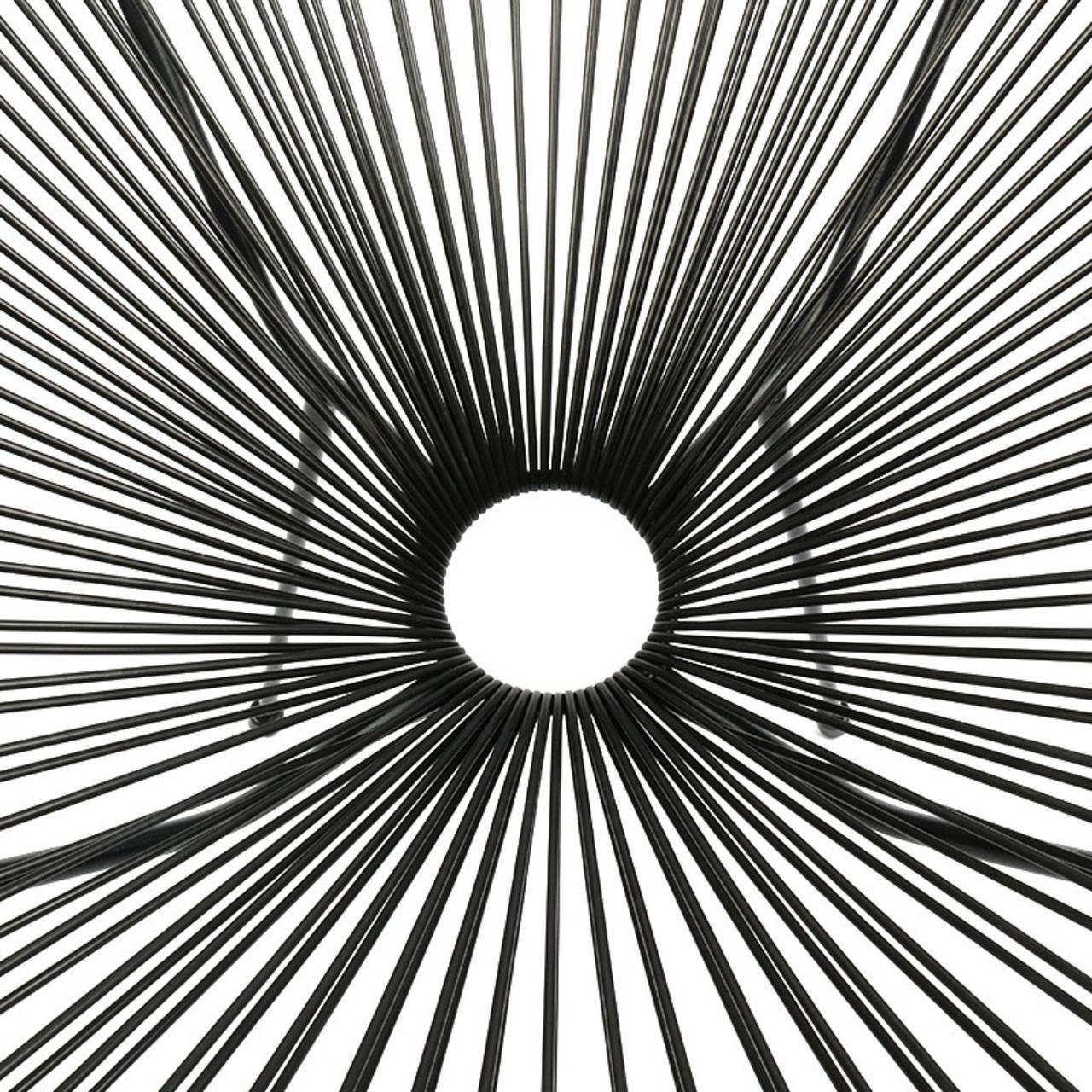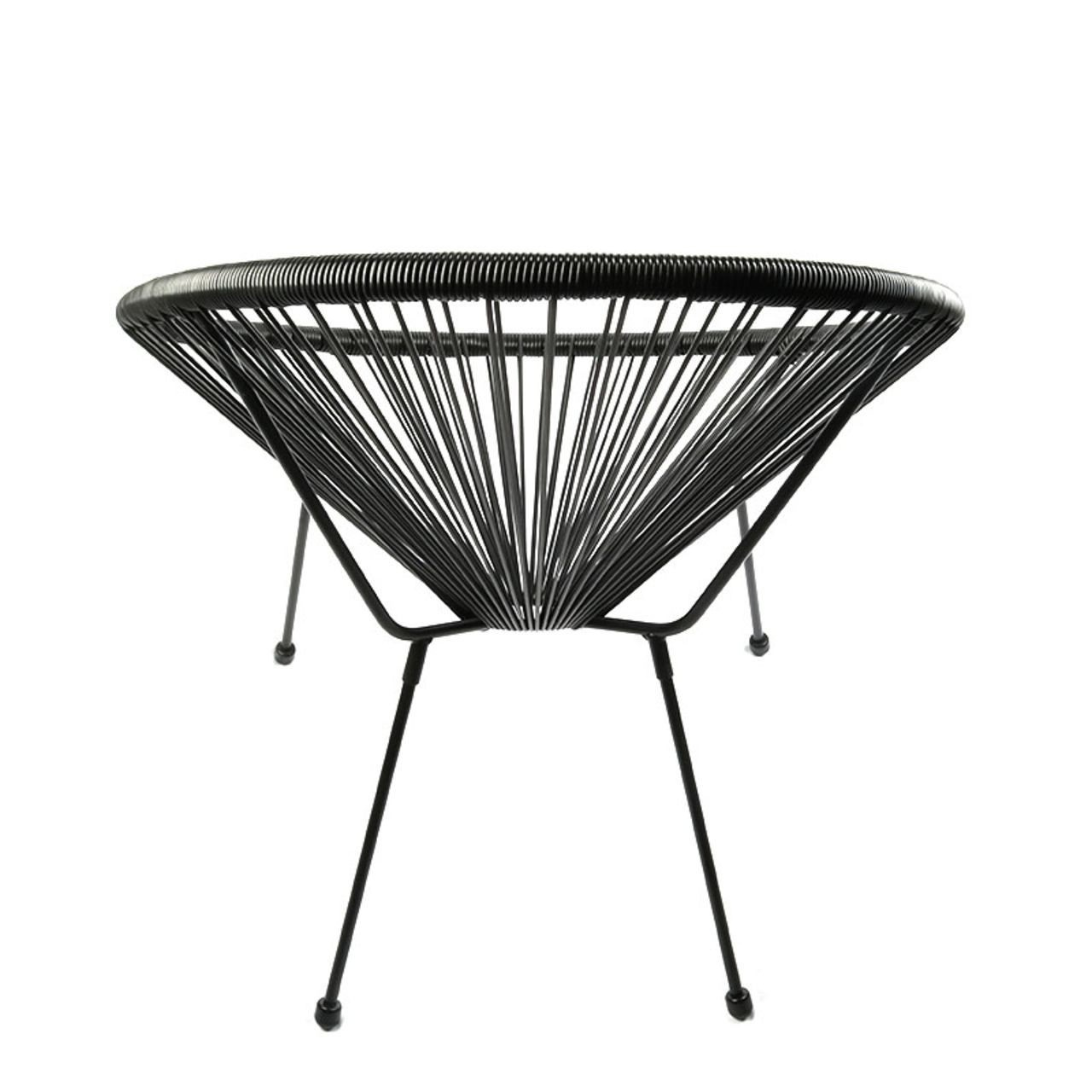Rozměry: - šířka sedáku: 70 cm - výška opěradla: 59 cm - celková výška: 87 cm - hloubka sedáku: 38 cm *podrobné rozměry na poslední fotografii Materiál - sedák: technoratan - nohy: kov lakovaný práškovou barvou Barva: - sedák: černá - nohy: černá