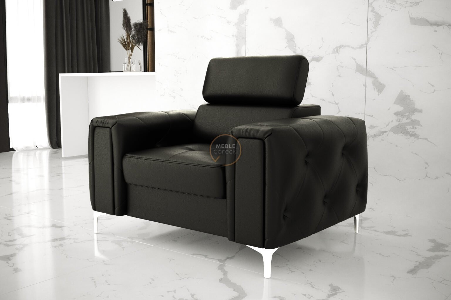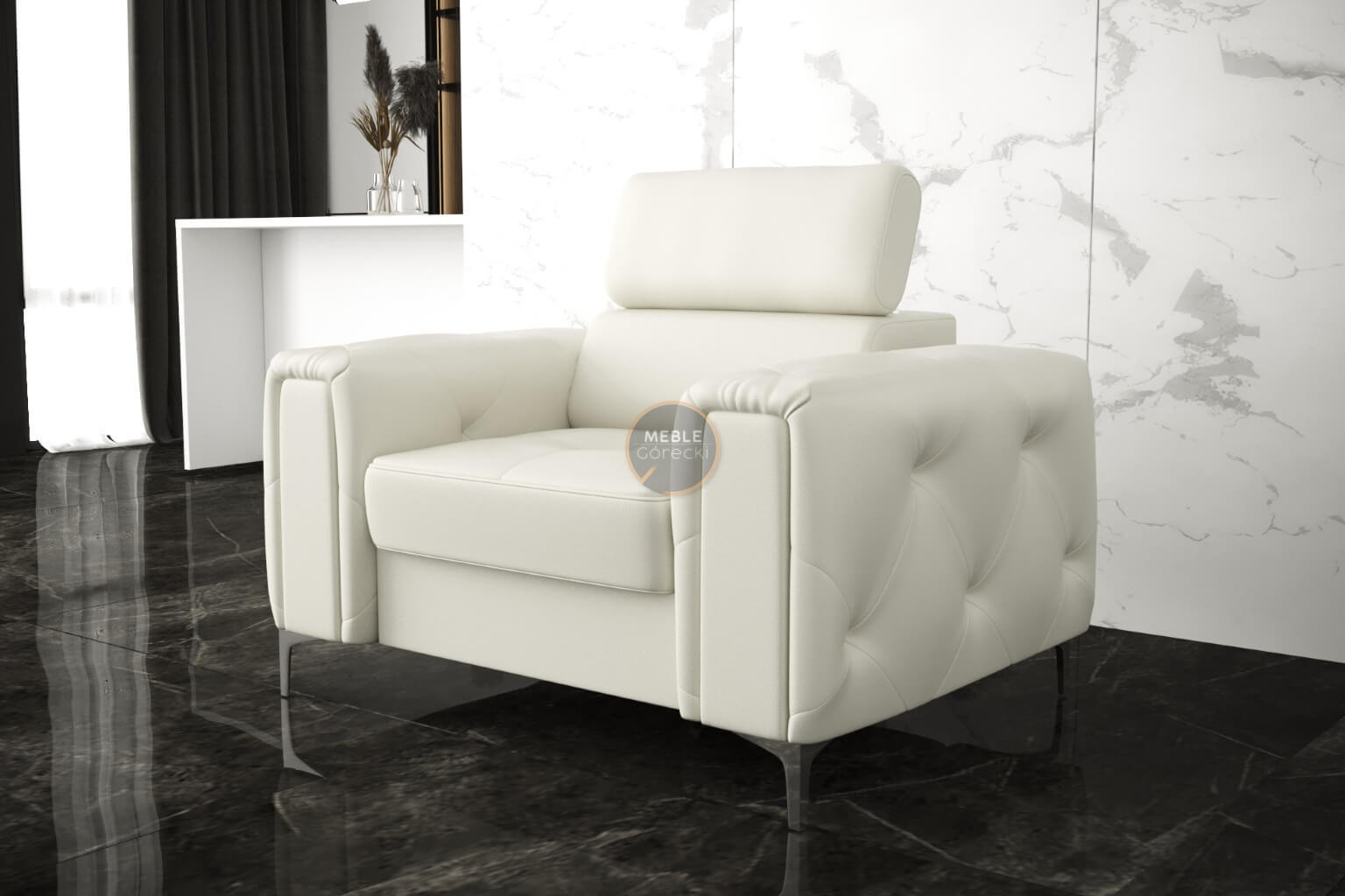 Kolekce nábytku Orion je něco, co nikde jinde nenajdete! Charakteristickým prvkem jsou krásně zdobené, prošívané boky ve stylu glamour. Kromě estetických prvků stojí za to věnovat pozornost dokončení v podobě nastavitelných opěrek hlavy, které usnadní přizpůsobení výšky opěradla tak, aby byla pro vás ideální. Vysoké 13 cm kovové nohy podtrhují celek a dodávají konstrukci lehkost.