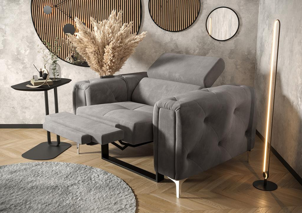 Kolekce čalouněného nábytku Orion je něco, co nikde jinde nenajdete! Charakteristickým prvkem jsou krásně zdobené, prošívané boky ve stylu glamour. Kromě estetických prvků stojí za to věnovat pozornost dokončení v podobě nastavitelných opěrek hlavy, které usnadní přizpůsobení výšky opěradla tak, aby byla pro vás ideální. Vysoké 13 cm kovové nohy podtrhují celek a dodávají konstrukci lehkost.