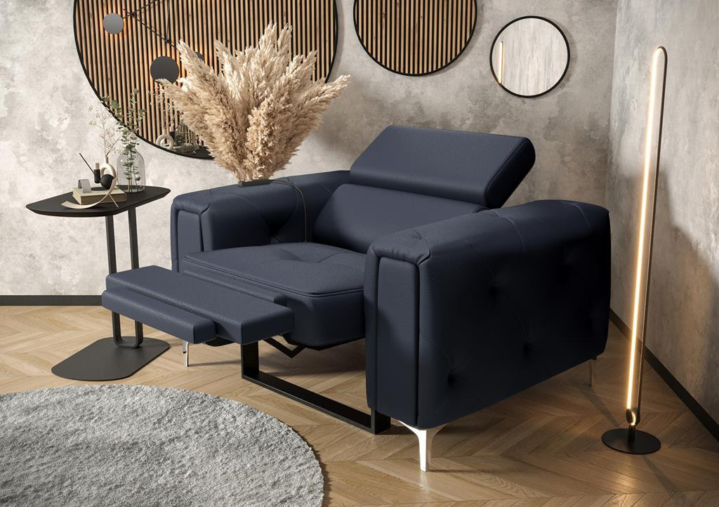 Křeslo ORION , relax přírodní kůže - černá kůže