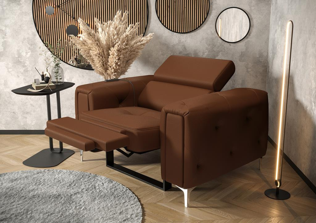 Křeslo ORION , relax přírodní kůže - Hnědá kůže