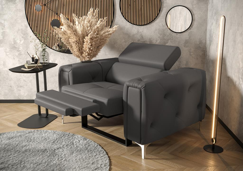 Kolekce nábytku Orion je něco, co nikde jinde nenajdete! Charakteristickým prvkem jsou krásně zdobené, prošívané boky ve stylu glamour. Kromě estetických prvků stojí za to věnovat pozornost dokončení v podobě nastavitelných opěrek hlavy, které usnadní přizpůsobení výšky opěradla tak, aby byla pro vás ideální. Vysoké 13 cm kovové nohy podtrhují celek a dodávají konstrukci lehkost.