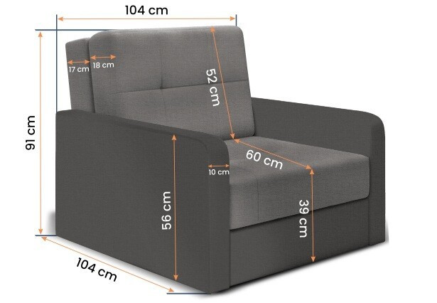 Toto křeslo není jen o vzhledu. Díky možnosti rozložení se snadno promění v pohodlné lůžko, což je ideální pro nečekané návštěvy nebo pro chvíle, kdy si chcete dopřát odpočinek. S šířkou 104 cm, výškou 91 cm a hloubkou 104 cm nabízí dostatek prostoru pro pohodlné sezení i ležení.