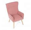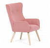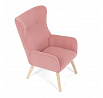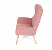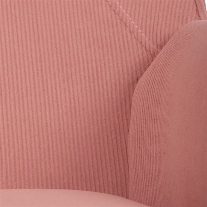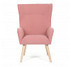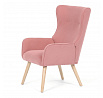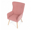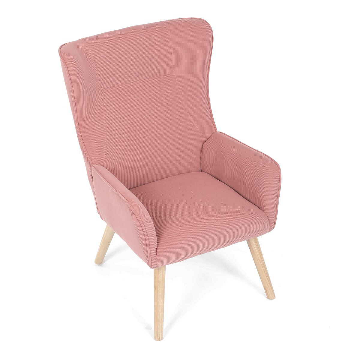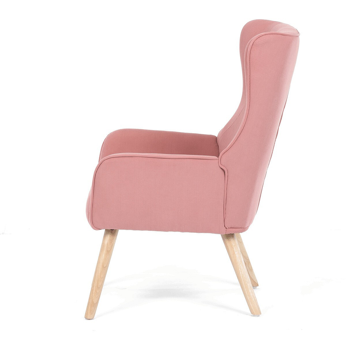 Křeslo s označením ušák je potažené růžovou manšestrovou látkou, která nabízí příjemnou texturu a vizuální efekt. Sedák i opěradlo jsou tvarované pro pohodlné opření těla, přičemž vysoké opěradlo s křídly poskytuje podporu hlavy a ramen. Masivní nohy z kaučukovníku zajišťují stabilitu a pevnost celého křesla, přičemž jejich přírodní odstín ladí s jemným tónem potahu. Díky pevnému provedení a kvalitnímu materiálu je křeslo vhodné pro relaxaci v obývacím pokoji nebo čtecím koutě.