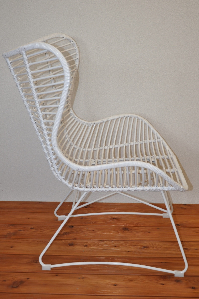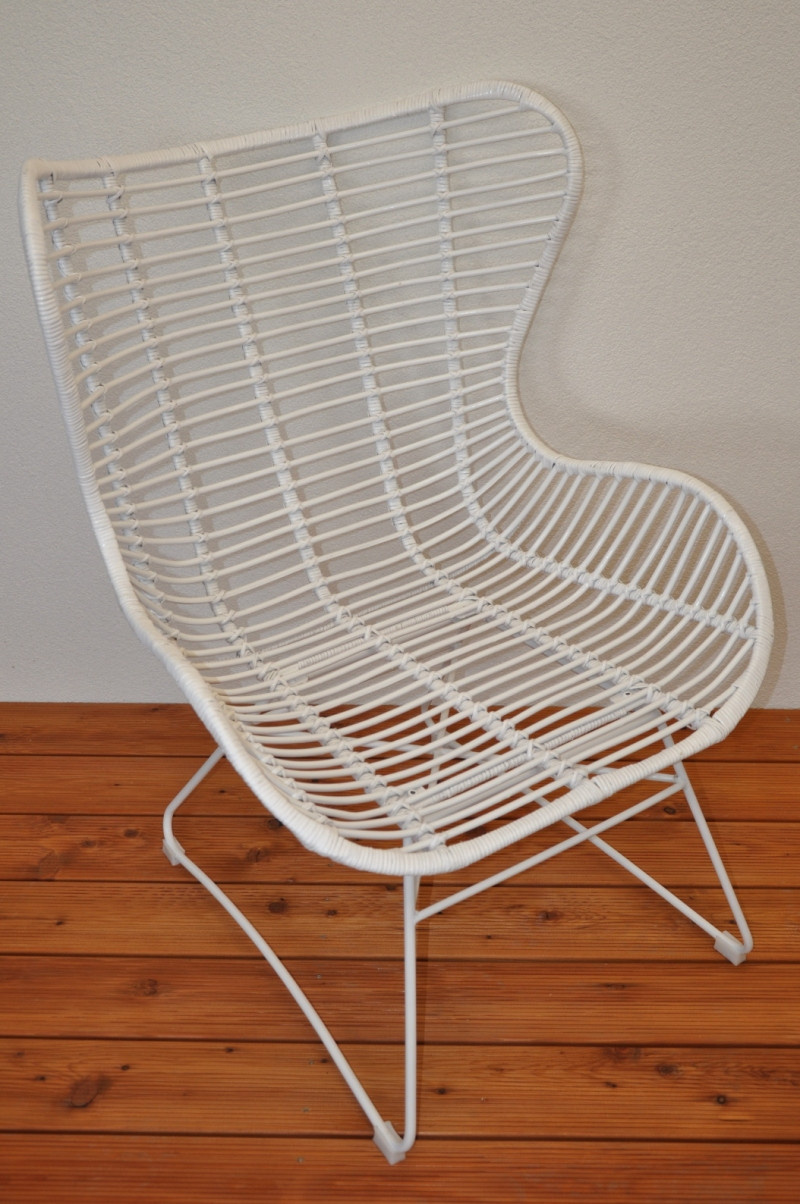 Moderní ratanové křeslo s kovovou konstrukcí. | Nádherné a pohodlné křeslo s výpletem z přírodního ratanu. Barva ratanového výpletu i barva ocelové konstruce je bílá. Pevná ocelová konstrukce zajistí vysokou pevnost a nosnost křesla. Zároveň křeslu dodá moderní vzdušný vzhled. Velikost křesla je 75x80x94 cm. Výška sedu křesla Praha je 41 cm. Křeslo je velice pohodlné i bez použití polstru. Velice často se však doplňuje polštářkem či dekou ke sladění do vašeho interiéru.