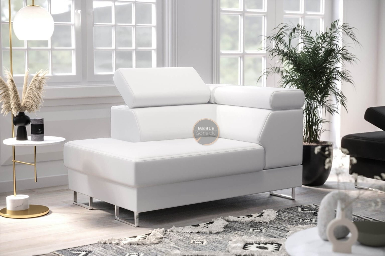 Křeslo lenoška GALAXY - Levá strana, Bílá eko kůže