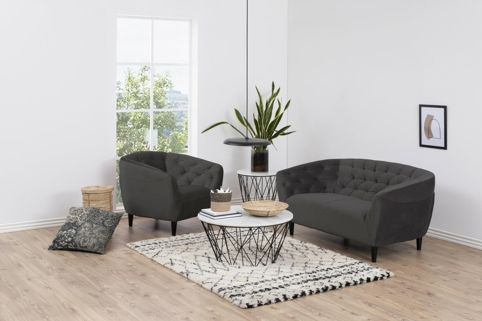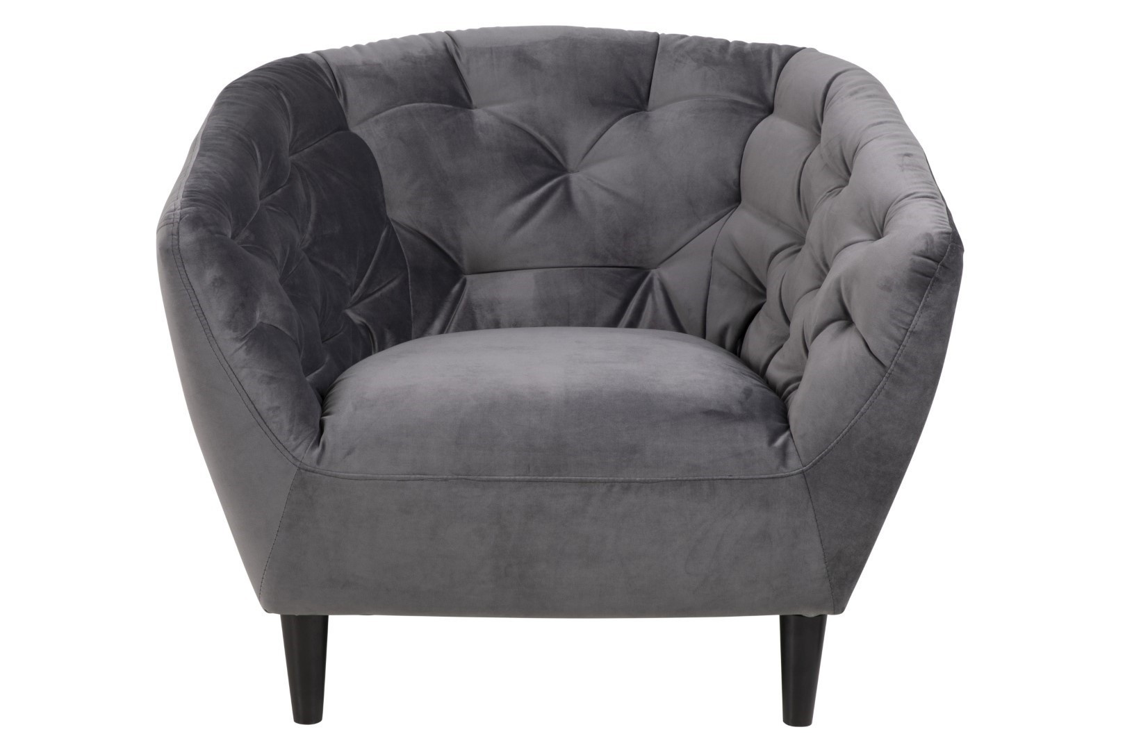 Křeslo Ria je mimořádně útulné křeslo s elegantním prošívaným sedákem. Měkká sametová tkanina VIC barva dark grey 28 je mimořádně příjemná na dotek a útulná. Ozdobené sedadlo s prošíváním odkazuje na styl glamour. Základem křesla jsou dřevěné kaučukové nohy natřené na černo. Křeslo je k dispozici také v jiných barvách. Doplněním křesla může být také pohovka ze stejné série. Hmotnost: 23,5 kg. Rozměry kartonu: 65cm x 98cm x 84cm Výška sedadla: 46 cm Šířka sedadla: 57 cm Hloubka sedadla: 55 cm Výška područek: 42 cm