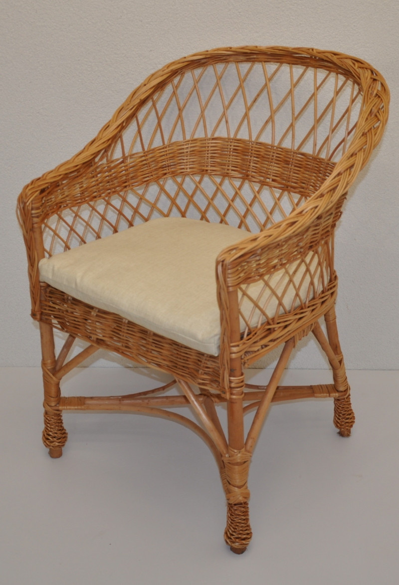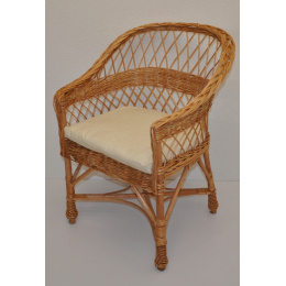 Křeslo San vyrobené z přírodního vrbového proutí. | Konstrukce křesla San je vyrobena ze silných vrbových tyčí, výplet je tvořen z vrbových proutků. Velikost křesla je 62x63x82 cm. Výška sedu křesla je 42 cm. Nosnost křesla je 100 kg. Polstr na křeslo je vyroben v České republice. Polstr je vyrobený z kvalitní látky a vyznačuje se vysokou kvalitou zpracování. Polstry pro nás vyrábí firma AXIN Cuschions s.r.o., která zaměstnává výhradně místní vyučené švadleny z České republiky. Tímto způsobem se snažíme podporovat výrobu a zaměstnanost v naší republice.