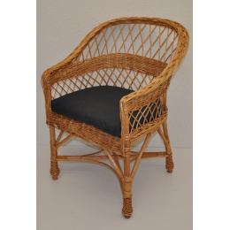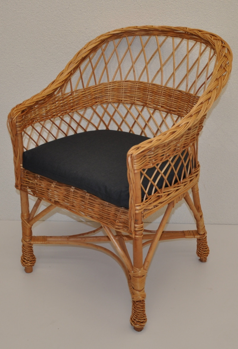 Křeslo San vyrobené z přírodního vrbového proutí...... | Konstrukce křesla San je vyrobena ze silných vrbových tyčí, výplet je tvořen z vrbových proutků. Velikost křesla je 62x63x82 cm. Výška sedu křesla je 42 cm. Nosnost křesla je 100 kg. Polstr na křeslo je vyroben v České republice. Polstr je vyrobený z kvalitní látky a vyznačuje se vysokou kvalitou zpracování. Polstry pro nás vyrábí firma AXIN Cuschions s.r.o., která zaměstnává výhradně místní vyučené švadleny z České republiky. Tímto způsobem se snažíme podporovat výrobu a zaměstnanost v naší republice......