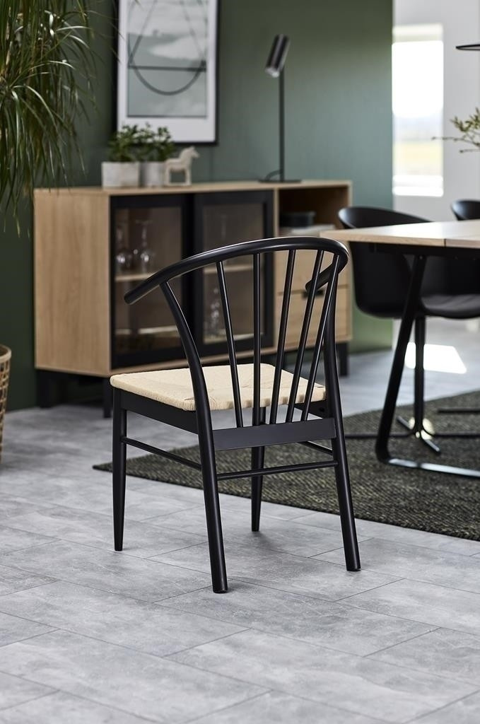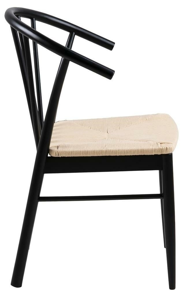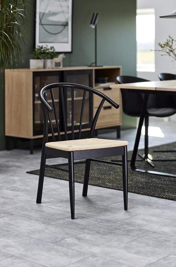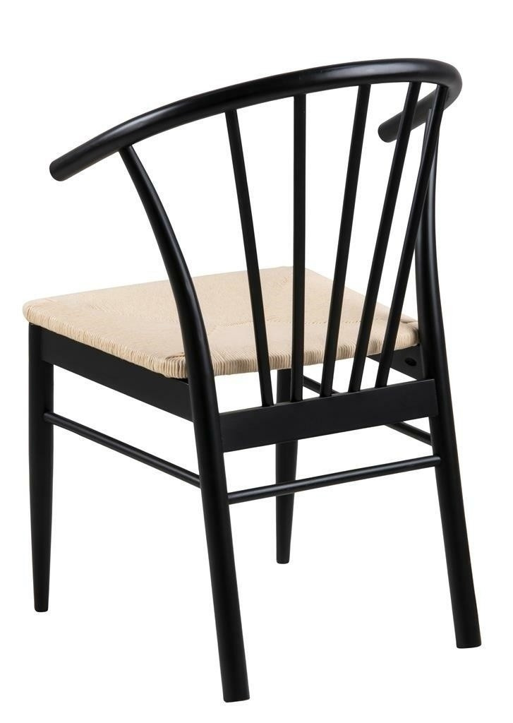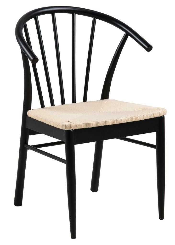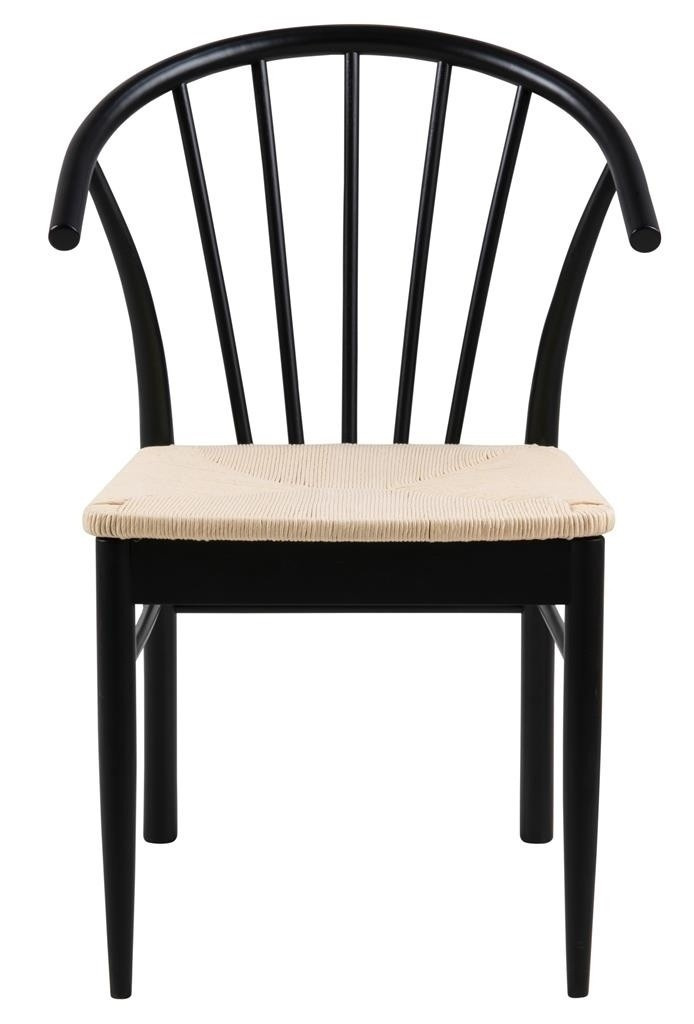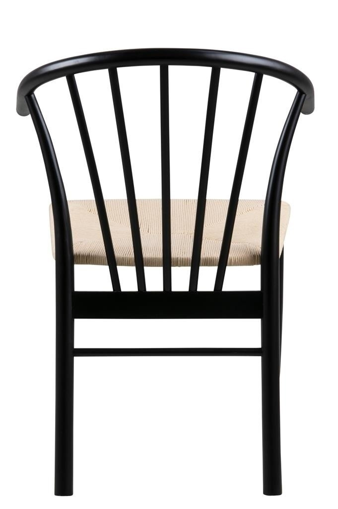Křeslo s područkami Cassandra je nábytek ideálně hodící se do interiérů ve stylu boho nebo skandinávském. Disponuje pohodlnými, ergonomickými opěrkami a širokým sedákem. Je vyrobeno z papírového pletení, které nejen zajímavě a esteticky vypadá, ale také je velmi odolné. Zbývající části židle jsou ze dřeva v černé barvě. Základnu židle tvoří čtyři nohy, z nichž přední se směrem dolů zužují. Zadní, mírně širší, plynule přecházejí v opěradlo. Poskytuje vhodnou oporu pro záda a skládá se ze sedmi vertikálních prvků uspořádaných do tvaru vějíře. Počet kartonů: 1 Rozměry kartonů: 57,5x74,5x94cm Hmotnost kartonů: 8,4kg