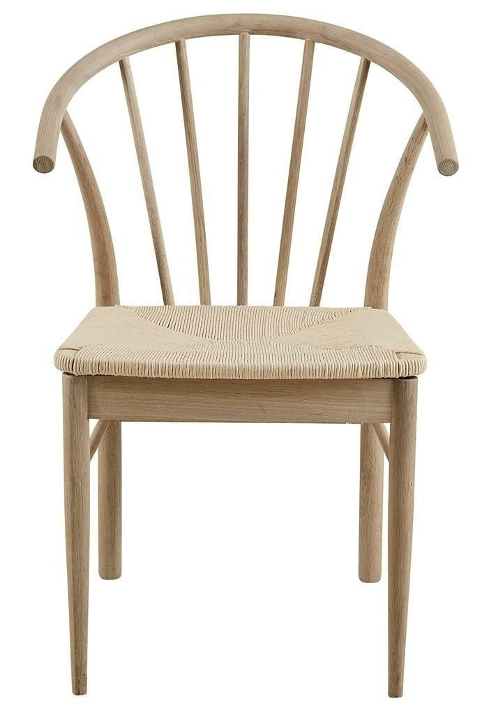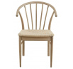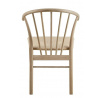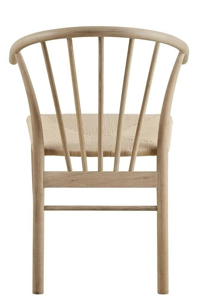 Křeslo s područkami Cassandra je nábytek ideálně hodící se do interiérů ve stylu boho nebo skandinávském. Disponuje pohodlnými, ergonomickými opěrkami a širokým sedákem. Je vyrobeno z papírového pletení, které nejen zajímavě a esteticky vypadá, ale také je velmi odolné. Zbývající části židle jsou ze dřeva v barvě běleného dubu. Základnu židle tvoří čtyři nohy, z nichž přední se směrem dolů zužují. Zadní, mírně širší, plynule přecházejí v opěradlo. Poskytuje vhodnou oporu pro záda a skládá se ze sedmi vertikálních prvků uspořádaných do tvaru vějíře. Počet kartonů: 1 Rozměry kartonů: 57,5x74,5x94cm Hmotnost kartonů: 8,4kg