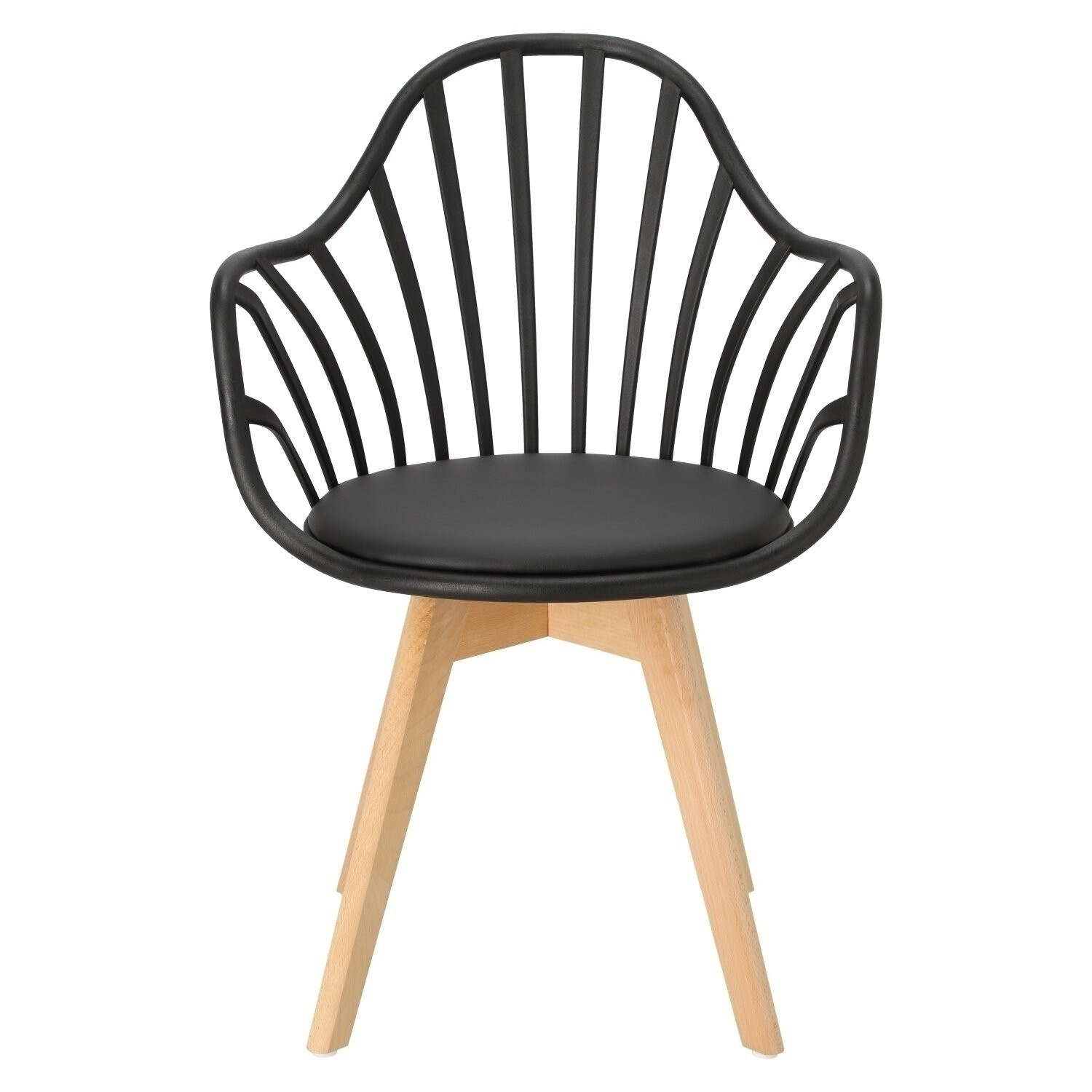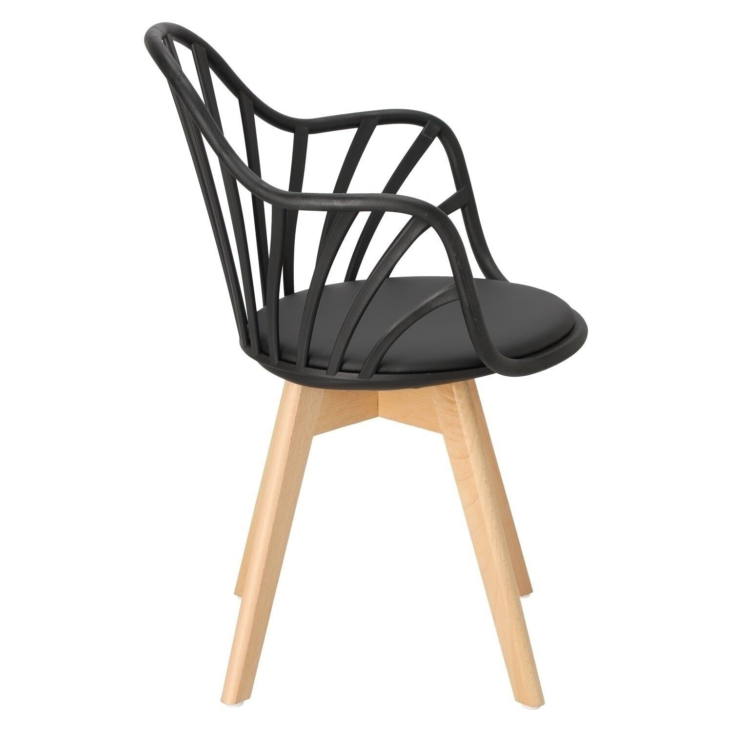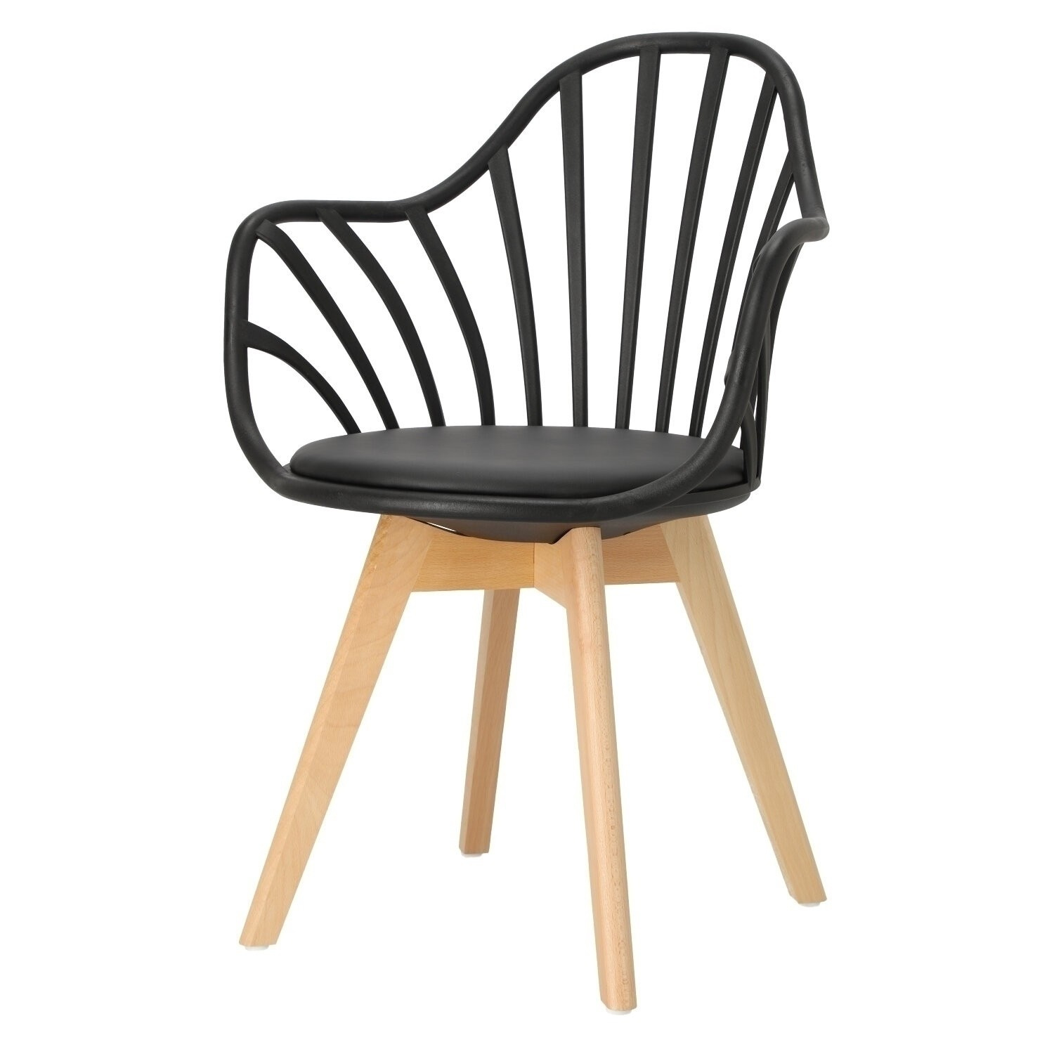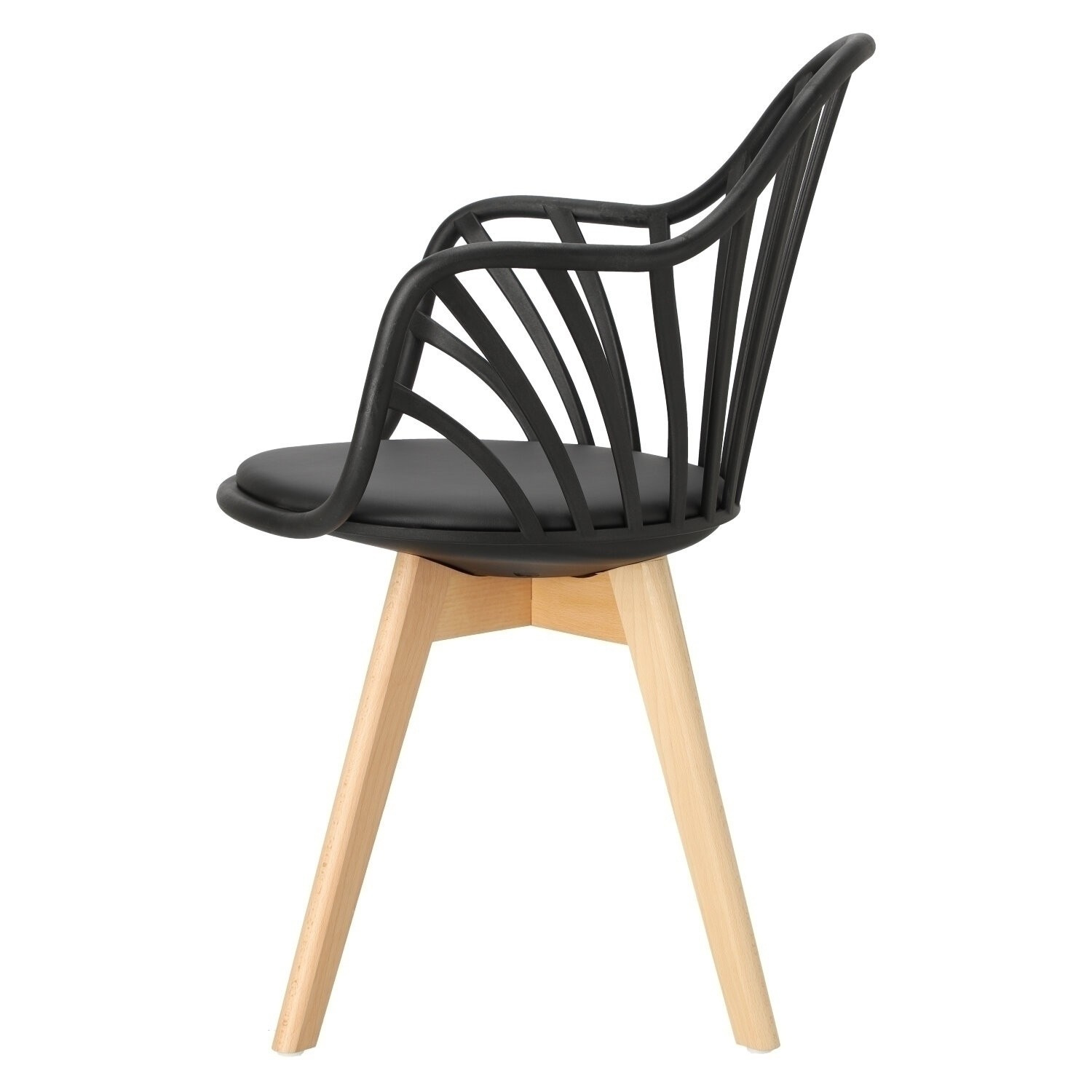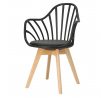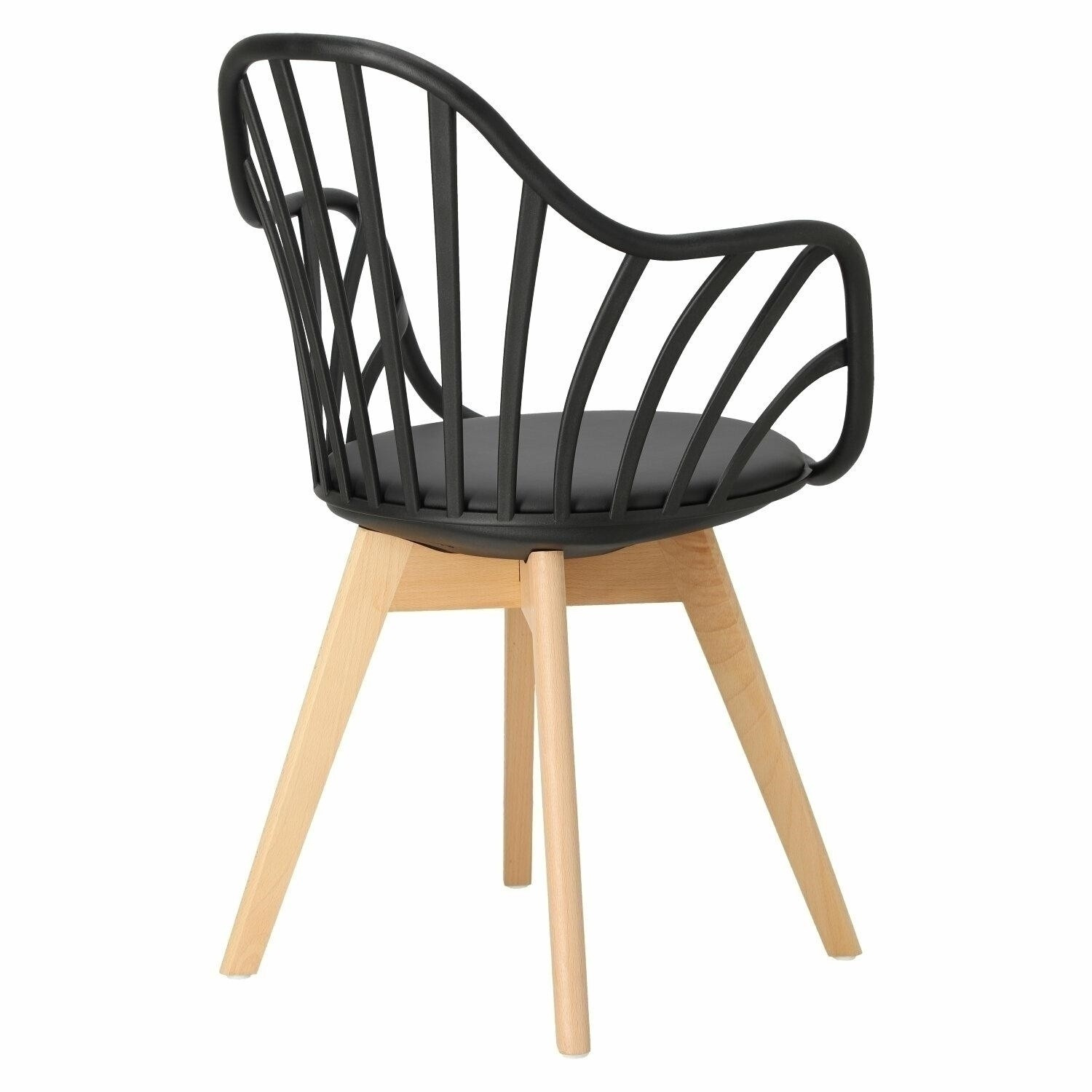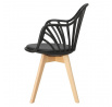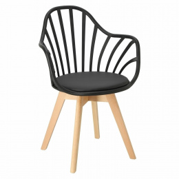 Židle Sirena se dokonale hodí do moderního uspořádání, jak jídelního, tak kancelářského, a stane se jeho vizitkou. Byl vybaven měkkým polštářem, potaženým černou eko kůží, který zajistí maximální pohodlí každému uživateli. Praktické otvory v opěradle dodávají celku originální vzhled, zároveň zajišťují odpovídající úroveň ventilace. Židle má područky, které zajišťují pohodlnou oporu pro ruce. Základnu židle tvoří nohy z bukového dřeva, které je trvanlivé a odolné, což zaručuje používání po dlouhá léta. Umístěné na ní sedadlo,