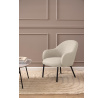 Křeslo Spencer se vyznačuje neobvyklým tvarem. Čalouněné sedadlo, připomínající bublinu, se vyznačuje zaoblenou siluetou, která je pokryta hrubě tkanou látkou. Stojící na kulatých černých nohách, křeslo je stabilní a dobře se hodí k různým stylům interiérů od boho, japandi přes skandinávský až po moderní glamour. Elegantní odpočinkové křeslo s jednoduchou a kulatou siluetou. Kulaté ocelové nohy v černé barvě s matným práškovým lakováním. Výška opěradla: 36 cm Šířka sedáku: 53 cm Hloubka sedáku: 52 cm Výška područek od podlahy: 56,5 cm Výška područek od sedáku: 16 cm Vyžaduje montáž. Max. zatížení 110 kg Rozměry kartonu: 74x69x56 cm