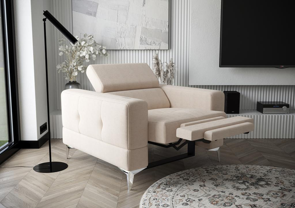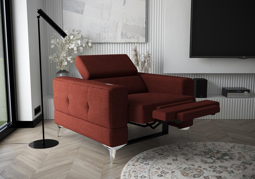Křeslo Toscania relax bude ideálním doplňkem rohové sedačky nebo pohovky z kolekce Toscania. Celá kolekce se vyznačuje minimalistickým a nadčasovým designem. Ideální pro fanoušky minimalismu. Díky zachované klasické a jednoduché formě se bez problémů hodí do většiny interiérů. Stojí za to věnovat pozornost jemně zdobeným bokům, prošívaným sedákům a vysokým nohám, které celku dodávají lehkost. Vyberte druh materiálu a barvu z naší široké nabídky tkanin a my jej pro vás vyrobíme na zakázku.