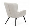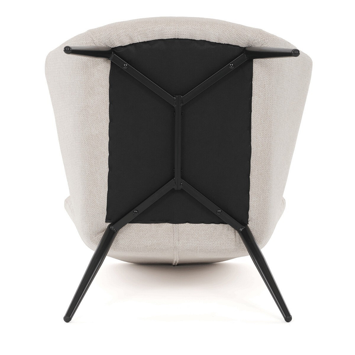 Křeslo ušák v krémovém odstínu nabízí pohodlí díky vysokému polstrování sedáku i opěradla, které je potažené prémiovou látkou s příjemnou texturou. Pevné černé kovové nohy zajišťují stabilitu a dlouhou životnost, zatímco integrované područky přispívají k ergonomickému posedění. Design s charakteristickými vysokými bočními opěrkami poskytuje oporu hlavy a ramenům, což zvyšuje komfort při odpočinku. Křeslo je vhodné do moderních i klasických interiérů, kde vynikne svým nadčasovým tvarem a neutrálním barevným provedením.
