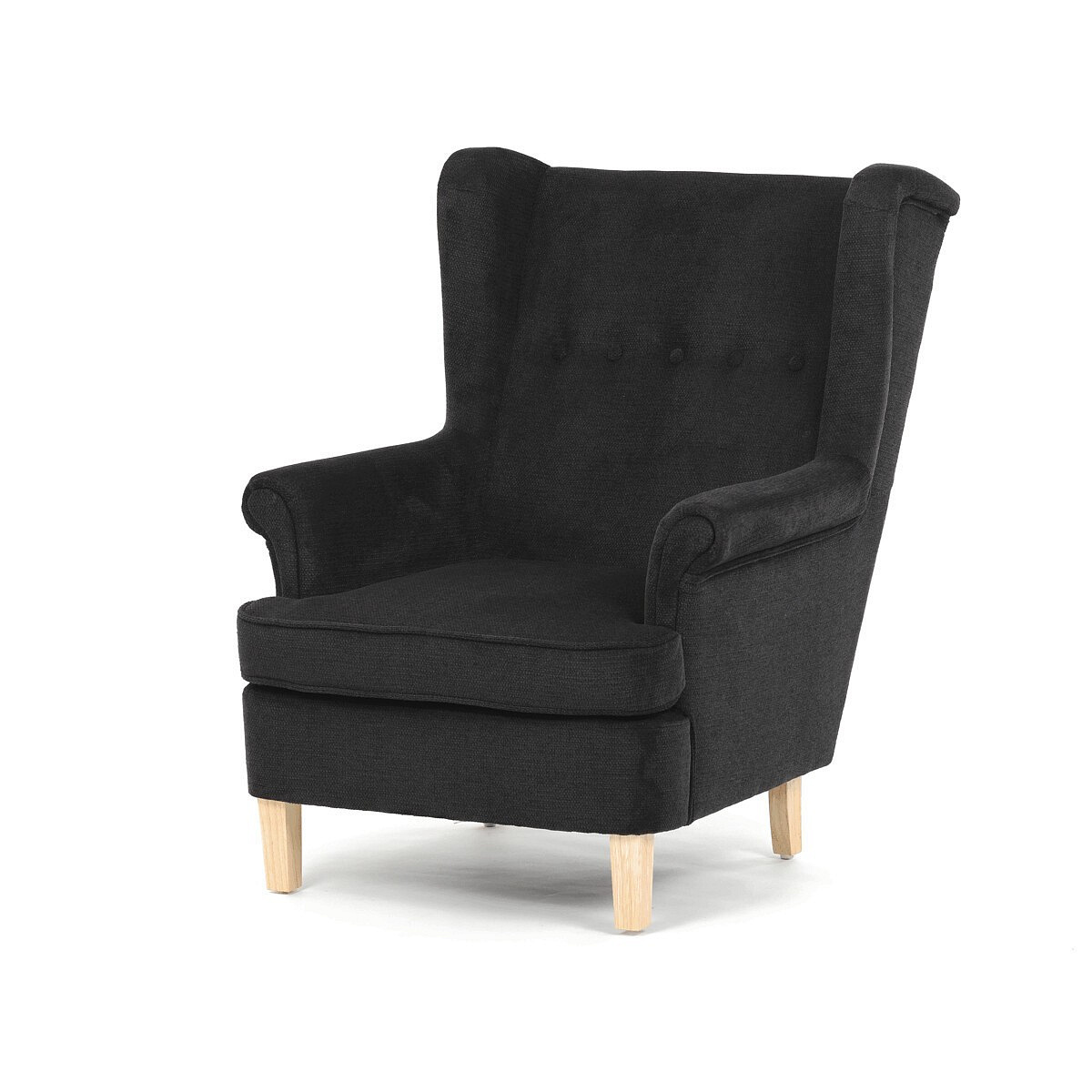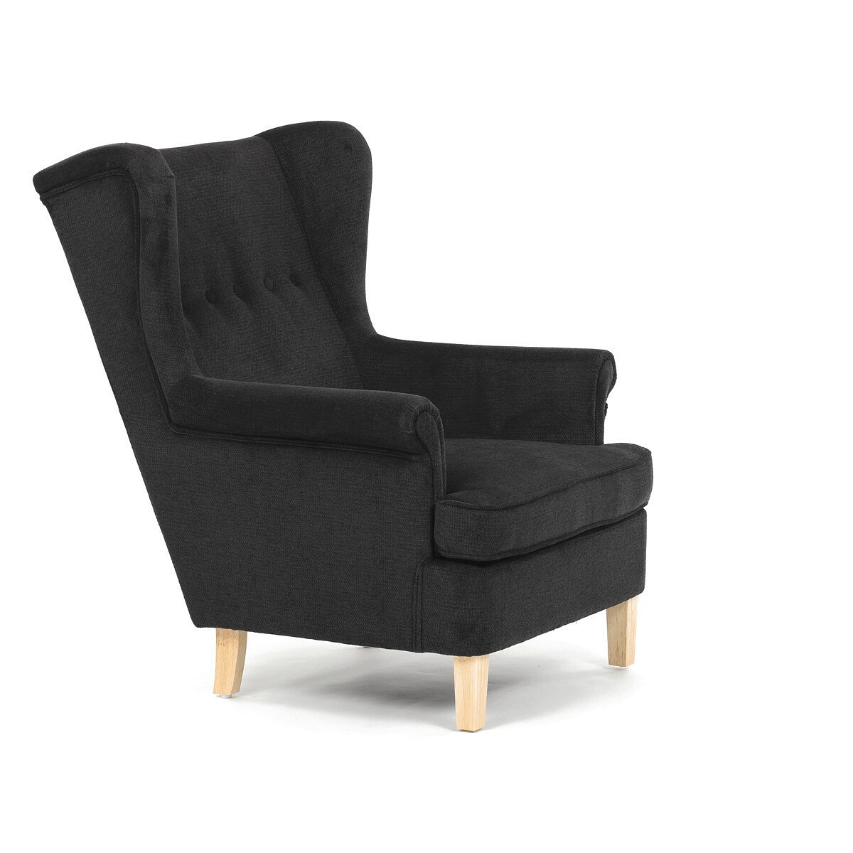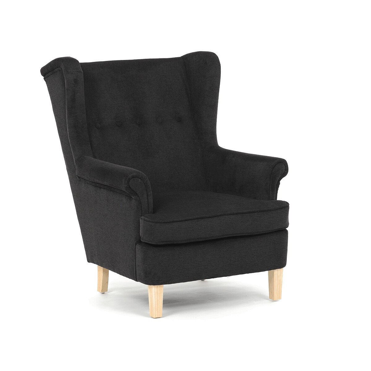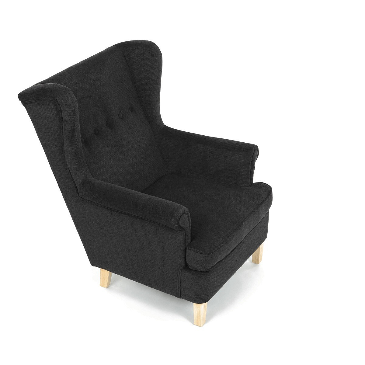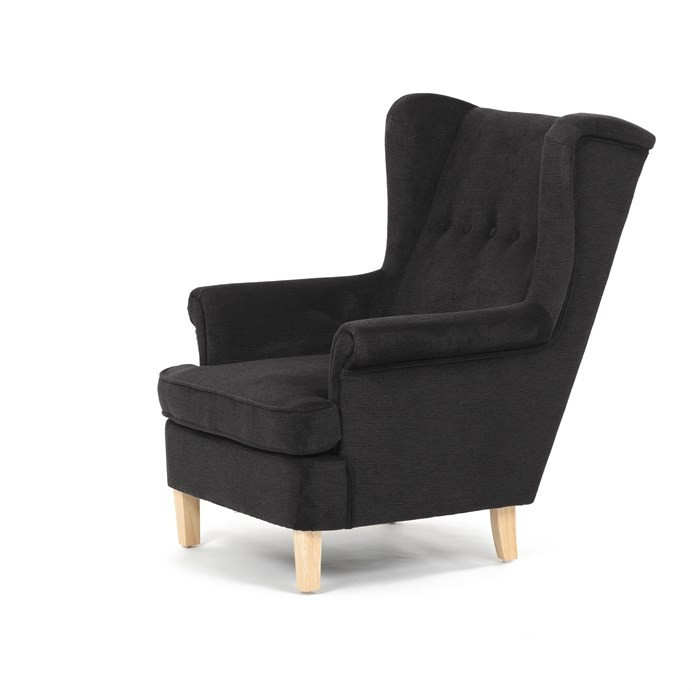 Křeslo ušák, černá látka, AK-388 BK2