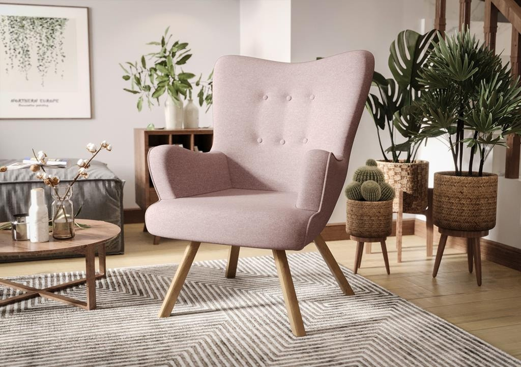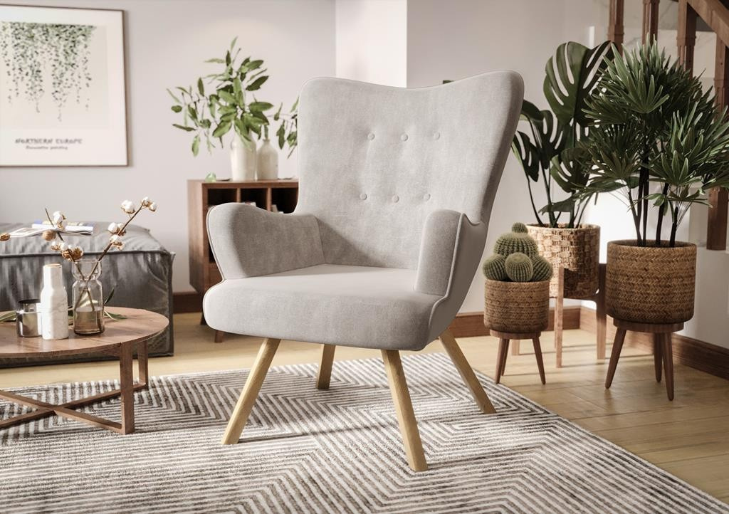 Mimořádně pohodlné křeslo ušák Flori na dřevěných nožkách. Komfortní křeslo má profilované opěradlo. Vyrobíme ho pro tebe v jakékoli barevné kombinaci, kterou si můžeš vybrat z dostupných látek. Vyberte křeslo od výrobce. Vyberte Nábytek Górecki.