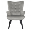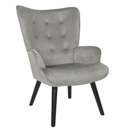Pohodlné křeslo ušák v šedé, manšestrové látce je nábytek jak pro klidný odpočinek, tak pro čtení knih nebo kojení. Křeslo s nízkým sedákem a hlubokým opěradlem zaručuje klid a pohodlí. Křeslo na dřevěných, točených, kaučukových nožkách v černé barvě se ideálně hodí do interiérů v moderním, loftovém i skandinávském stylu. Ozdobná, manšestrová tkanina vyrobená ze 100% polyesteru byla ozdobena knoflíky na opěradle. Křeslo váží 9 kg. Max. zatížení křesla 120 kg. Vyžaduje snadnou montáž (přišroubování nohou). Nestohuje se. Není vhodné pro venkovní použití. Tloušťka pěny na sedáku 24 kg/m3. Tloušťka pěny na opěradle: 18kg/m3