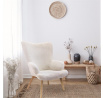Pohodlné křeslo ušák v bílé nadýchané látce je nábytek jak pro klidný odpočinek, tak pro čtení knih nebo kojení. Křeslo s nízkým sedákem a hlubokým opěradlem zaručuje klid a pohodlí. Křeslo na dřevěných, točených, kaučukových nožkách v přírodní barvě se dokonale hodí do interiérů v moderním, boho, japandi i skandinávském stylu. Ozdobná, bílá tkanina vyrobená ze 100% polyesteru byla ozdobena geometrickými prošíváními. Křeslo váží 9 kg. Max. zatížení křesla 110 kg. Vyžaduje snadnou montáž (přišroubování nohou). Nestohuje se. Není vhodné pro venkovní použití. Tloušťka pěny na sedáku 28kg/m3. Tloušťka pěny na opěradle: 24kg/m3