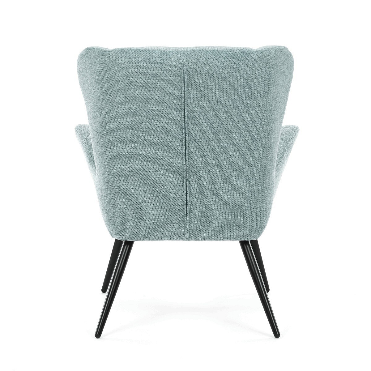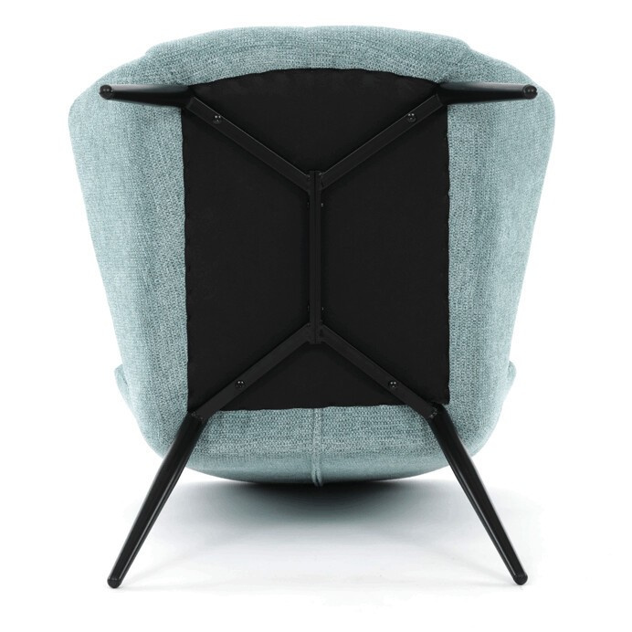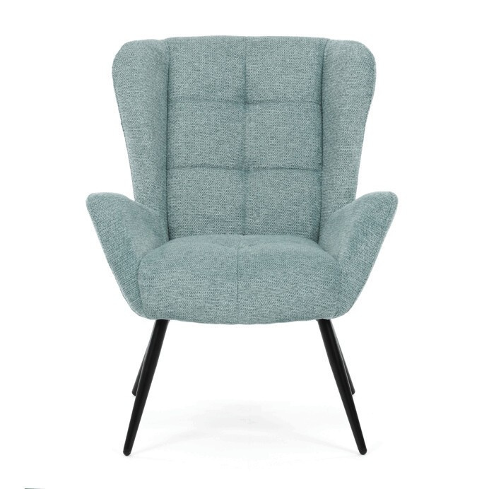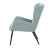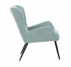 Křeslo ušák v světle modrém provedení nabízí pohodlí díky vysokému polstrování sedáku i opěradla, které je potažené prémiovou látkou s příjemnou texturou. Pevná kovová podnož v matné černé barvě zajišťuje stabilitu a dlouhou životnost. Ergonomicky tvarované područky doplňují komfort při sezení a podporují správnou oporu paží. Design křesla kombinuje klasický tvar ušáku s moderním minimalistickým vzhledem, což umožňuje jeho využití v různých typech interiérů. Křeslo není rozkládací ani otočné, což podtrhuje jeho pevnou a stabilní konstrukci.