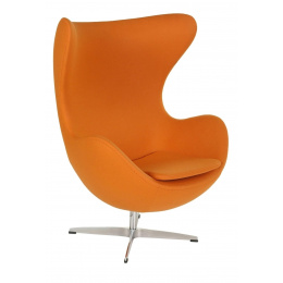 Křeslo Egg je moderní křeslo, které si oblíbili architekti a využívají ho v designových aranžmá soukromých bytů, moderních kanceláří či stylových hotelů. Forma křesla Vejce byla inspirována jedním z nejznámějších designových projektů na světě. Tvůrcem křesla Egg je Arne Jacobsen a samotné křeslo bylo navrženo pro hotel Radisson SAS v Kodani v roce 1958. Materiál použitý na potah křesla je syntetický kašmír, který se skládá z 20 % vlny a 80 % polyesteru. Díky takové směsi je tkanina odolná proti oděru. Křeslo Vejce bylo vyrobeno ze syntetického kašmíru a chromovaného kovu. Křeslo je otočné a má také funkci houpání. Rozměry kartonu: 103cm x 85cm x 65cm Max. množství v kartonu: 1