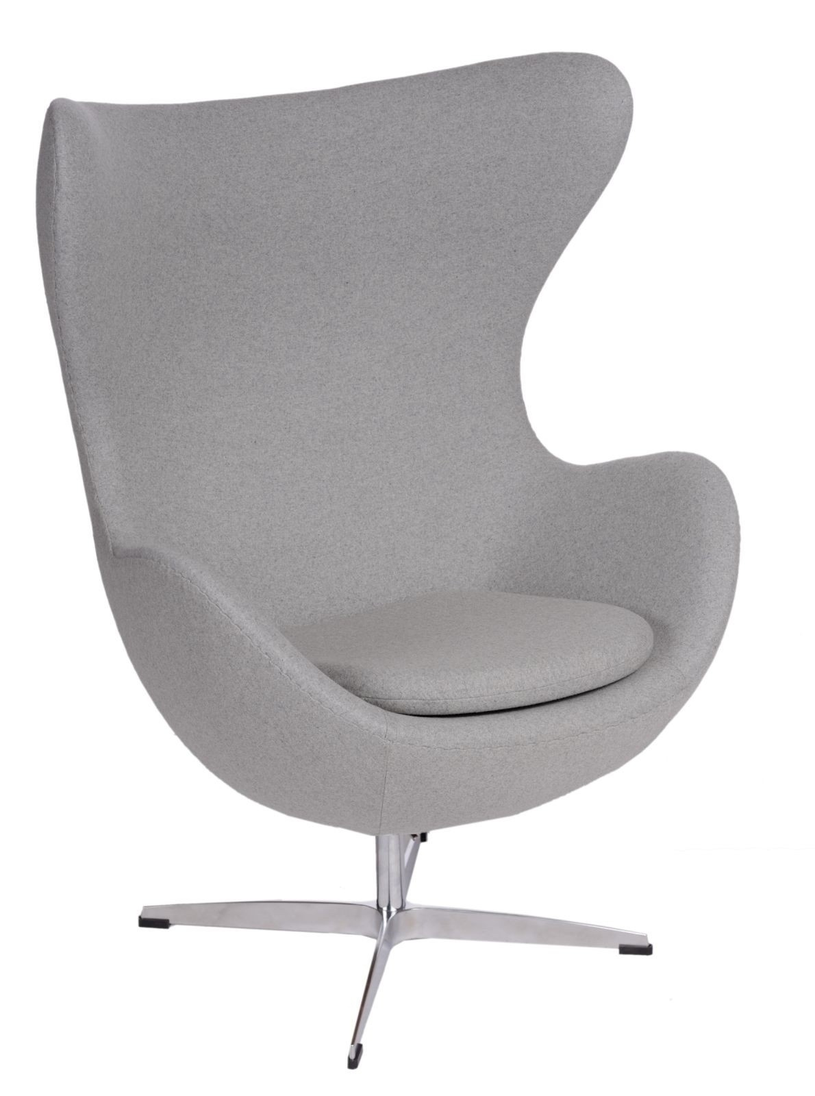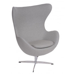 Křeslo Egg je moderní křeslo, které si oblíbili architekti a využívají ho v designových aranžmá soukromých bytů, moderních kanceláří či stylových hotelů. Forma křesla Vejce byla inspirována jedním z nejznámějších designových projektů na světě. Tvůrcem křesla Egg je Arne Jacobsen a samotné křeslo bylo navrženo pro hotel Radisson SAS v Kodani v roce 1958. Křeslo Vejce bylo vyrobeno z kašmírové vlny (40% vlna, 60% polyester) a chromovaného kovu. Křeslo je otočné a má také funkci houpání. Rozměry kartonu: 103cm x 85cm x 65cm Max. množství v kartonu: 1