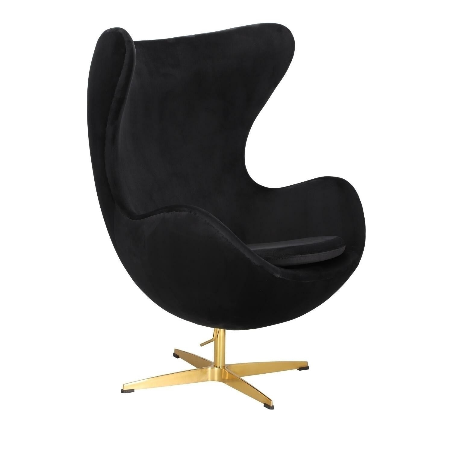 Křeslo Vejce je kultovní moderní křeslo, které si oblíbili architekti po celém světě. Křeslo je využíváno v designových aranžmá soukromých bytů, moderních kancelářích či stylových hotelech. Forma křesla Vejce byla inspirována jedním z nejznámějších modelů Egg na světě. Tvůrcem křesla Egg je Arne Jacobson, který vytvořil toto rozpoznatelné sedadlo na zakázku hotelu Radisson SAS v Kodani v roce 1958. Křeslo Vejce se skvěle hodí do modernistických, eklektických, glamour nebo pop-art prostor. Inovativní forma umožňuje přizpůsobit křeslo téměř každému prostoru, aby se stalo jedinečným doplňkem a prolomením hlavního charakteru interiéru. Křeslo Vejce bylo vyrobeno z velurové tkaniny dostupné v černé barvě a se zlatým nebo stříbrným podstavcem. Pohodlí zajišťuje také polštář umístěný na sedadle. Základna křesla s otočnou funkcí. Funkce kolébky. Není možnost zablokovat úhel odchylky. Vyžaduje montáž.