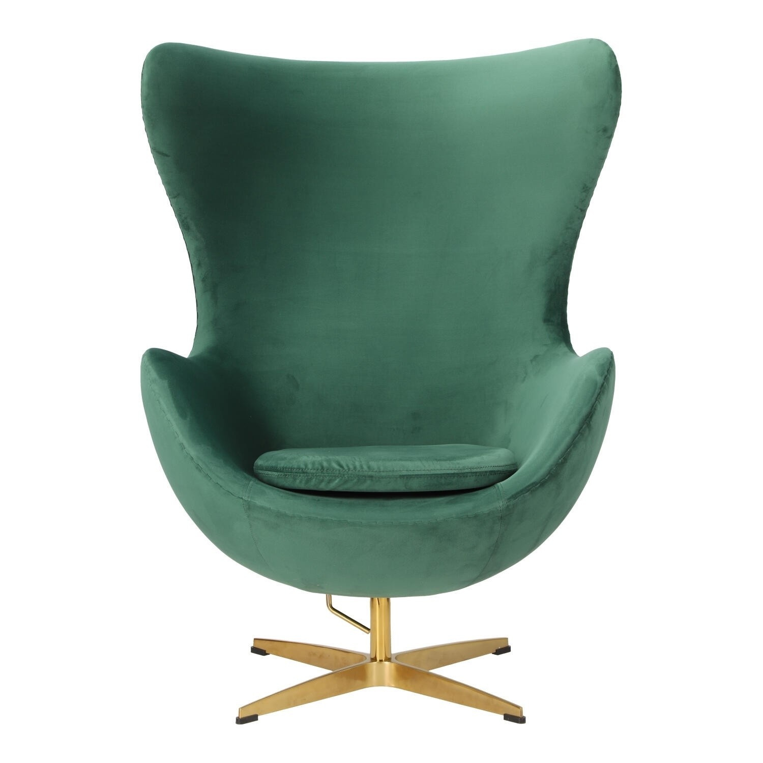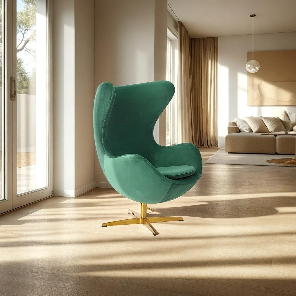 Křeslo Vejce Velvet zelené/ zlatá základna