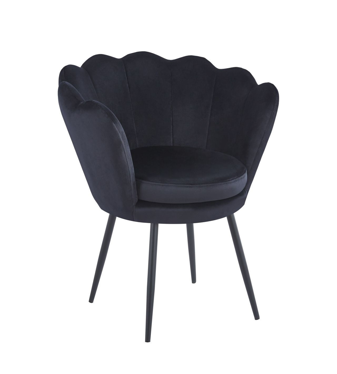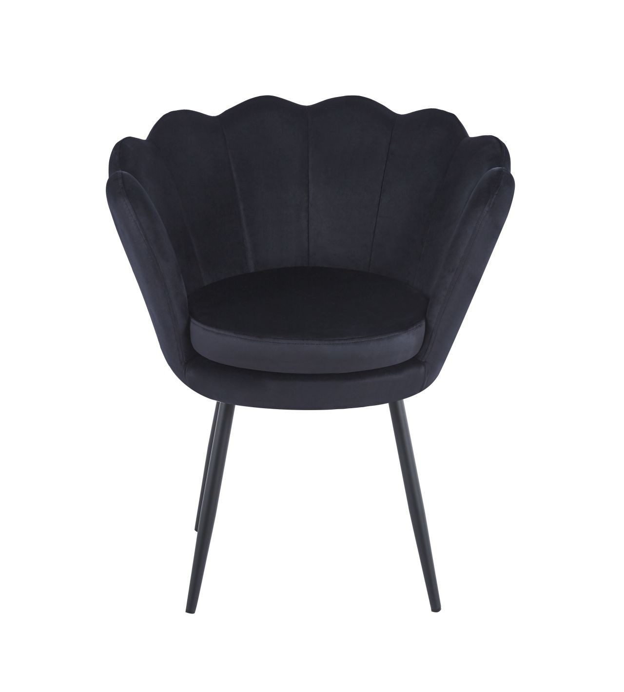 Rozměry: - celková výška: 77,50 cm - výška sedáku: 39,50 cm - výška opěradla: 37 cm - hloubka sedáku: 42 cm - šířka sedáku: 38 cm - celková šířka: 68 cm Materiál - čalounění: samet - nohy: kov lakovaný práškovou barvou Barva: - sedák: černá - nohy: černá