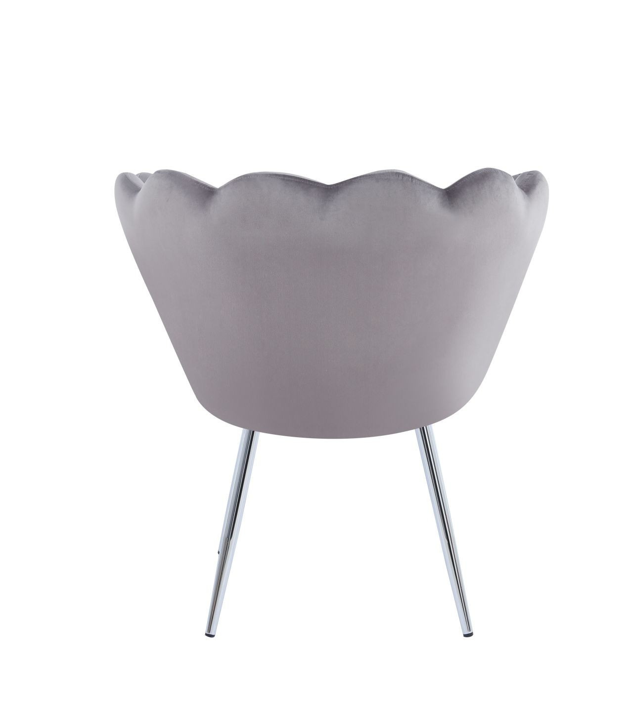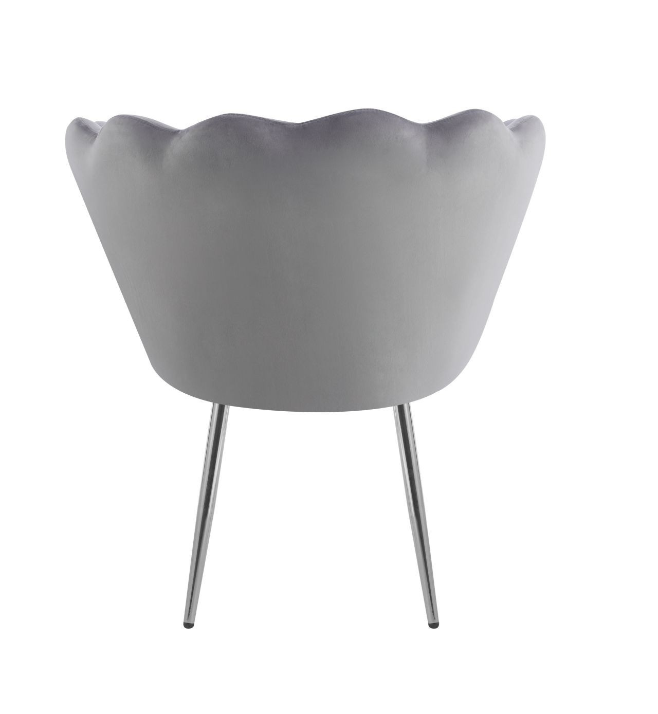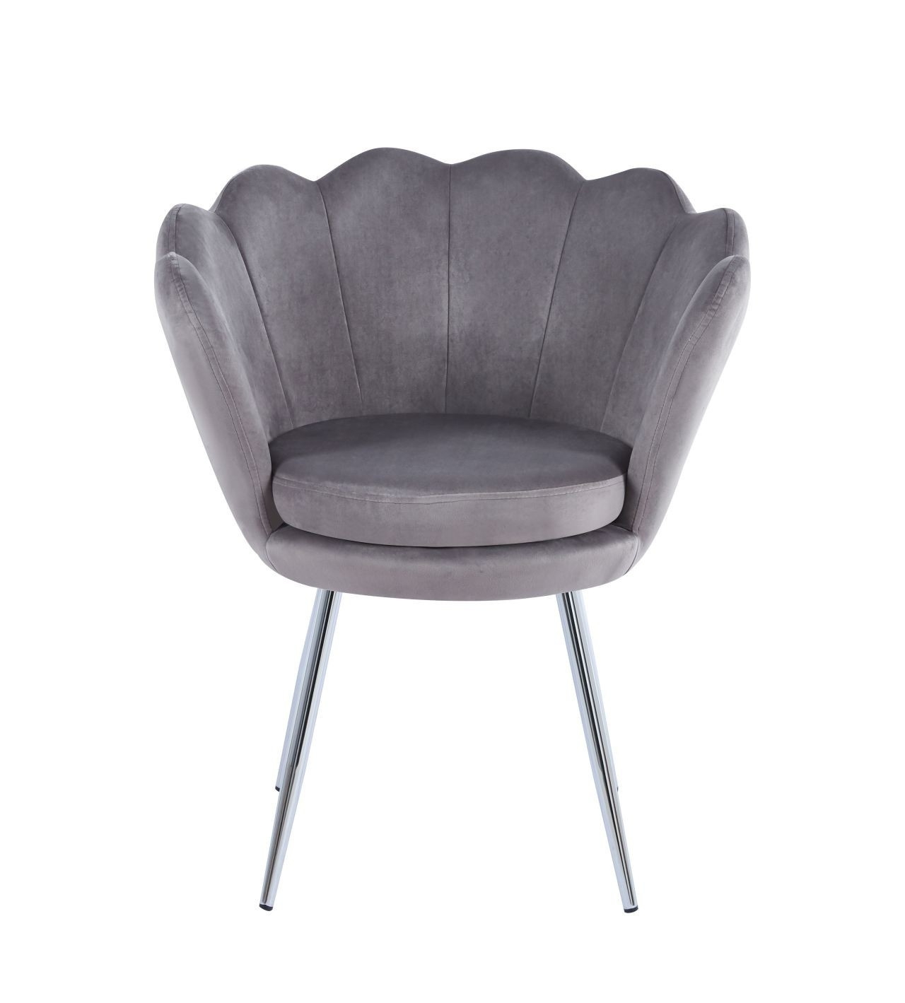 Rozměry: - celková výška: 77,50 cm - výška sedáku: 39,50 cm - výška opěradla: 37 cm - hloubka sedáku: 42 cm - šířka sedáku: 38 cm - celková šířka: 68 cm Materiál - čalounění: samet - nohy: chrom Barva: - sedák: šedá - nohy: stříbrné
