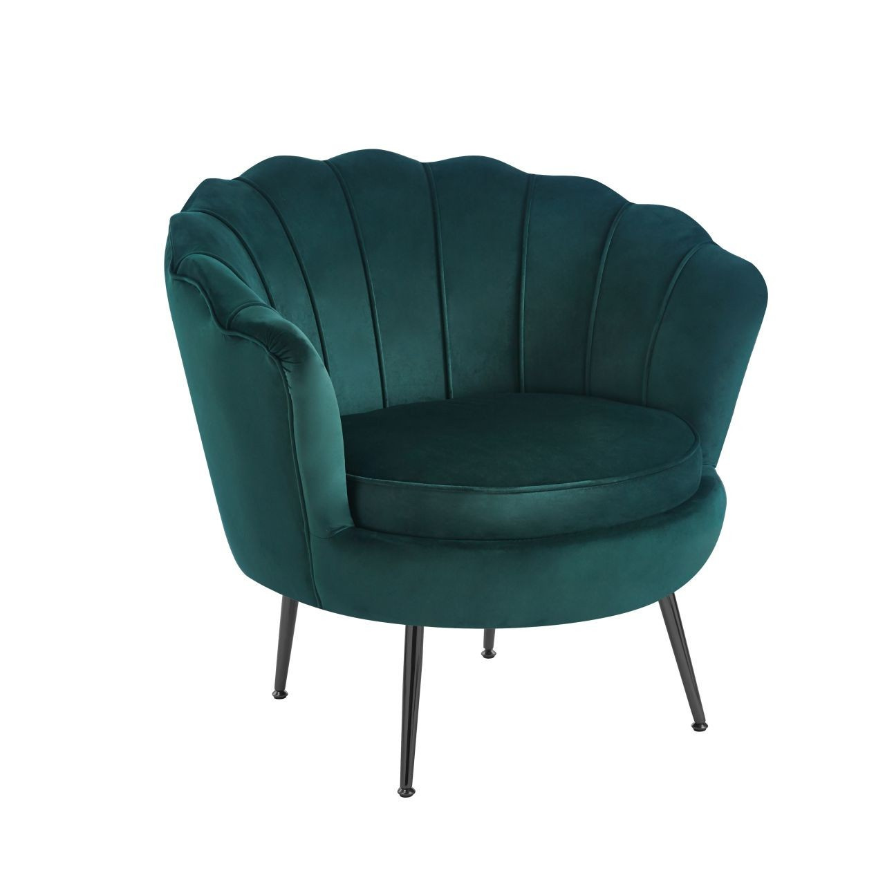 Rozměry: - celková výška: 78 cm - výška sedáku: 42,30 cm - hloubka sedáku: 55 cm - celková šířka: 78 cm Materiál - čalounění: samet - nohy: kov lakovaný práškovou barvou Barva: - sedák: zelený - nohy: černé
