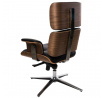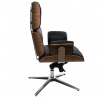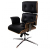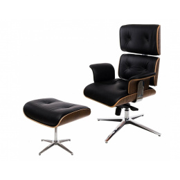 Neobyčejně pohodlné Křeslo VIP Exclusive Home je ideálním doplňkem stylové kanceláře nebo obývacího pokoje. Ideálně tvarované sedadlo z černé přírodní kůže má prošívání zakončené knoflíky potaženými stejnou látkou. Zadní část a spodní část sedadla jsou vyrobeny z tvarované překližky, která dodává křeslu nadprůměrný tvar. Pohodlným doplňkem jsou područky ve výšce 18 cm od sedáku. Sedák křesla je umístěn na kovové chromované základně s 5 nohami. Křeslo má nastavitelnou výšku a úhel sklonu. Křeslo dokonale ladí s podnožkou ze stejné série. Podnožka má ideálně tvarované sedadlo z černé kůže s prošíváním zakončeným knoflíky potaženými stejnou látkou. Spodní část sedáku je vyrobena z tvarované překližky, která dodává podnožce elegantní tvar. Podnožka byla umístěna na kovové chromované základně se 4 nohami. Maximální zatížení křesla je 120 kg, maximální zatížení podnožky: 120 kg Výška: 108/115