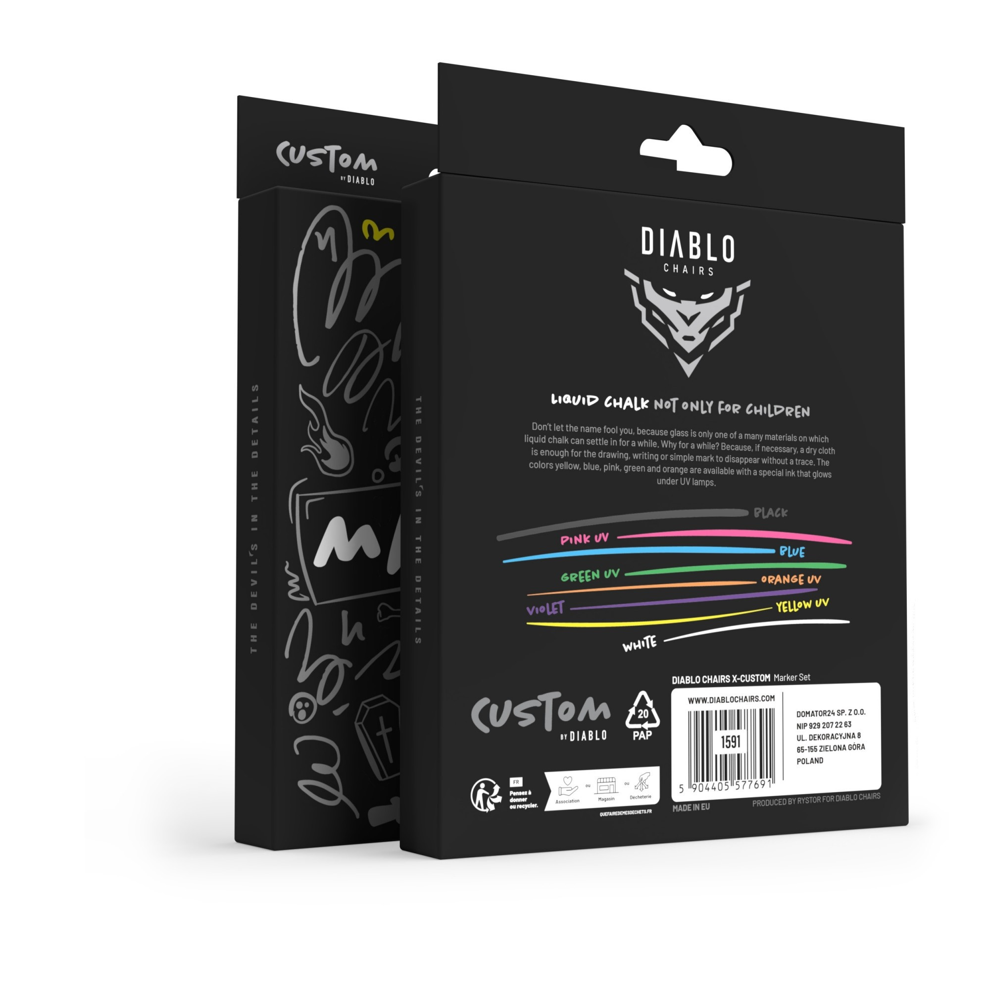Zapomeňte na obavy z poškození čalounění! Speciální křídové markery, vyvinuté ve spolupráci s firmou Rystor, jsou navrženy tak, aby byly naprosto bezpečné pro povrch vašeho X-Custom křesla. Jejich unikátní složení zaručuje, že kreslení bude zábavné a bezstarostné.