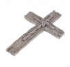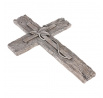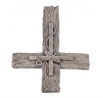 Kříž s lístky, imitace dřeva - polyresin, šedý