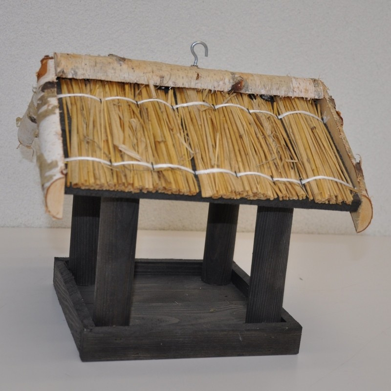 Krmítko pro ptáky vyrobené z masivního dřeva. | Velikost krmítkového prostoru je 19x19 cm. Celková velikost krmítka je 30x29x28 cm.