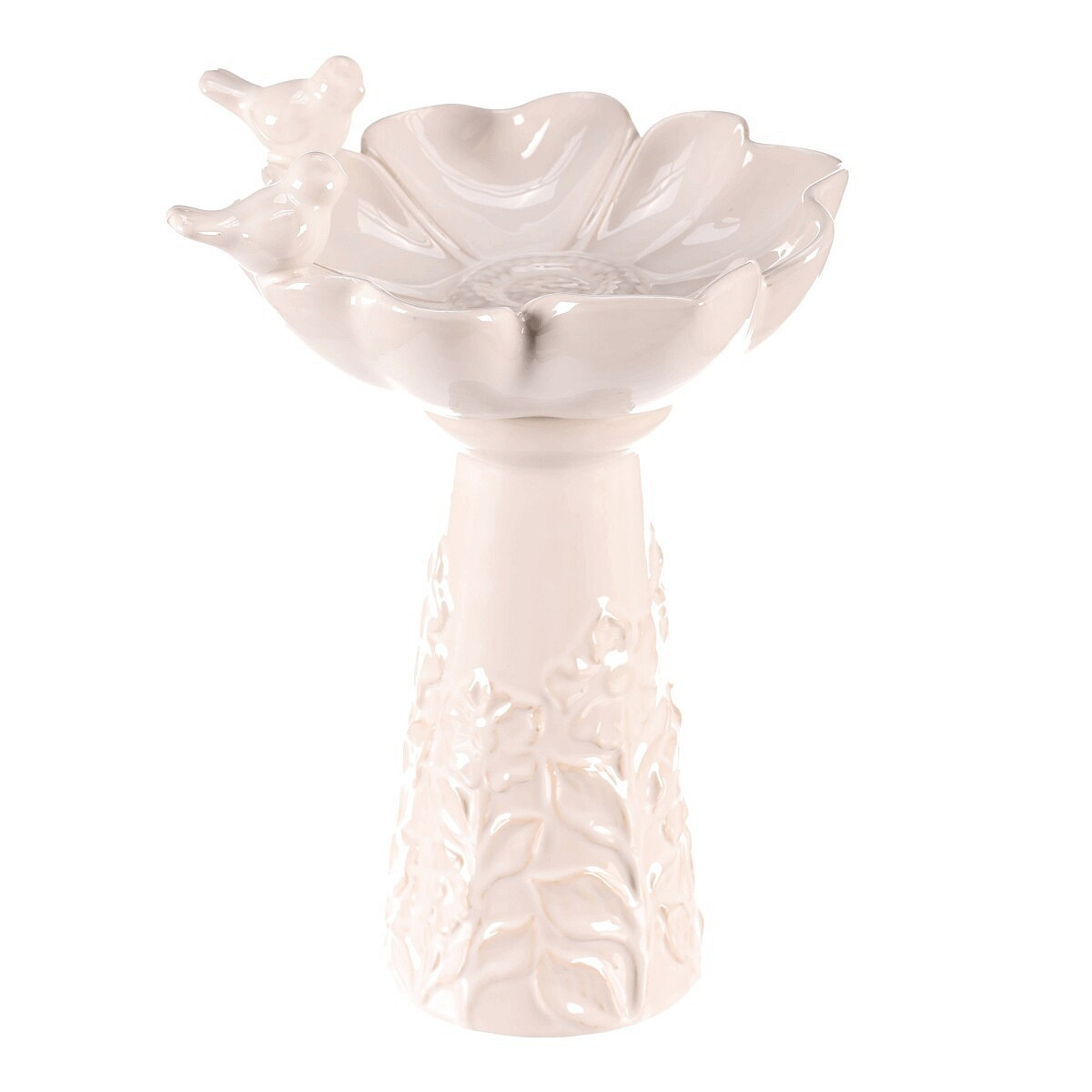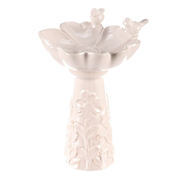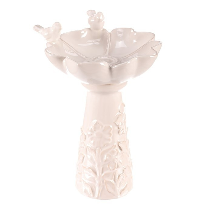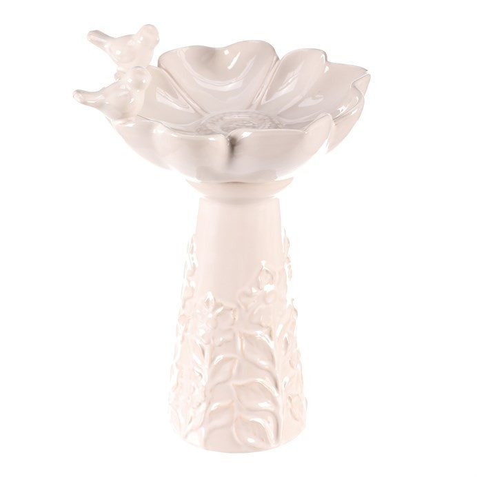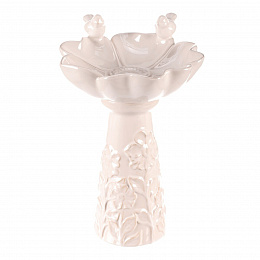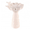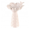 Krmítko/pítko - keramické, květ s ptáčky, stojaté, bílé
