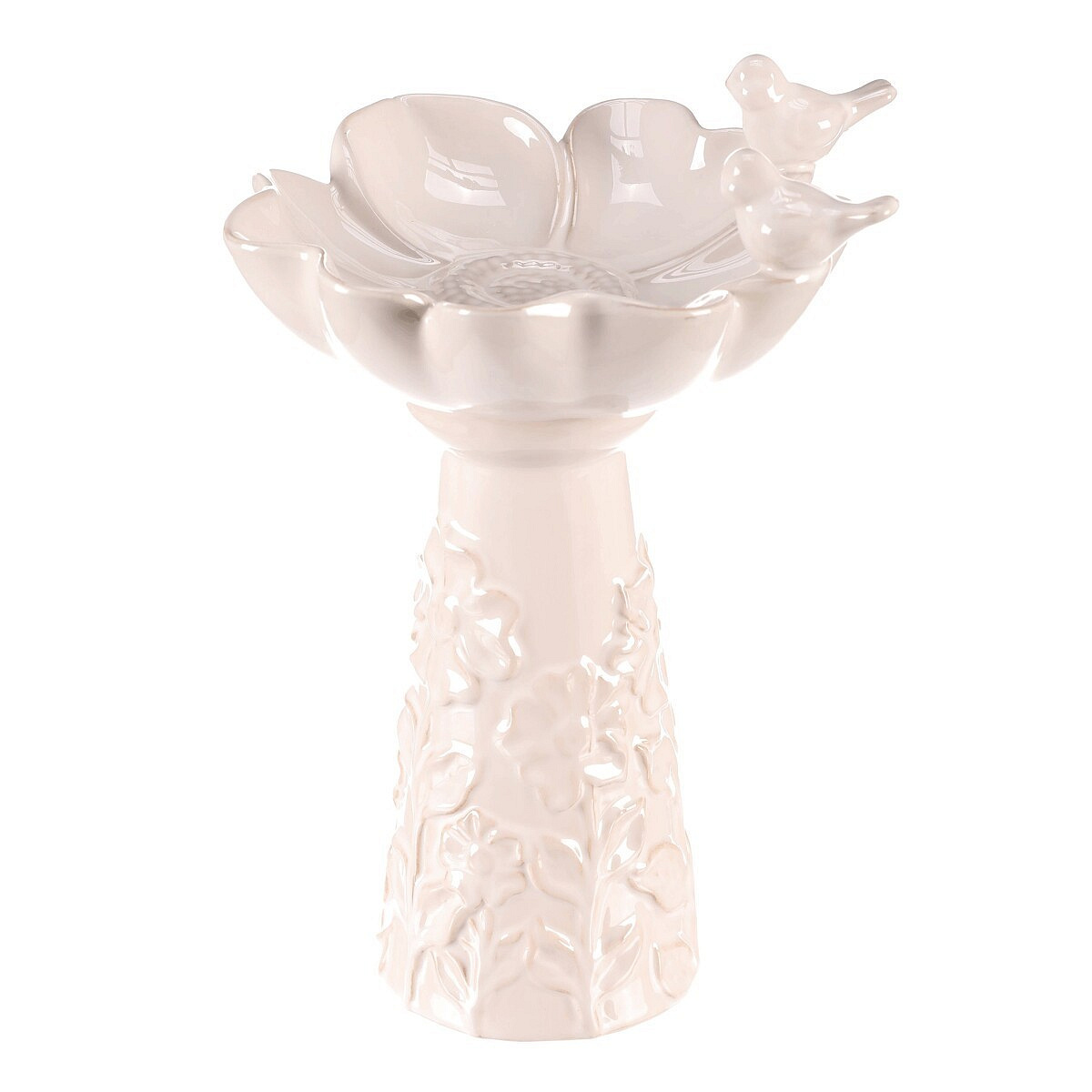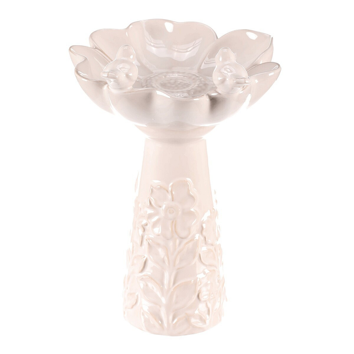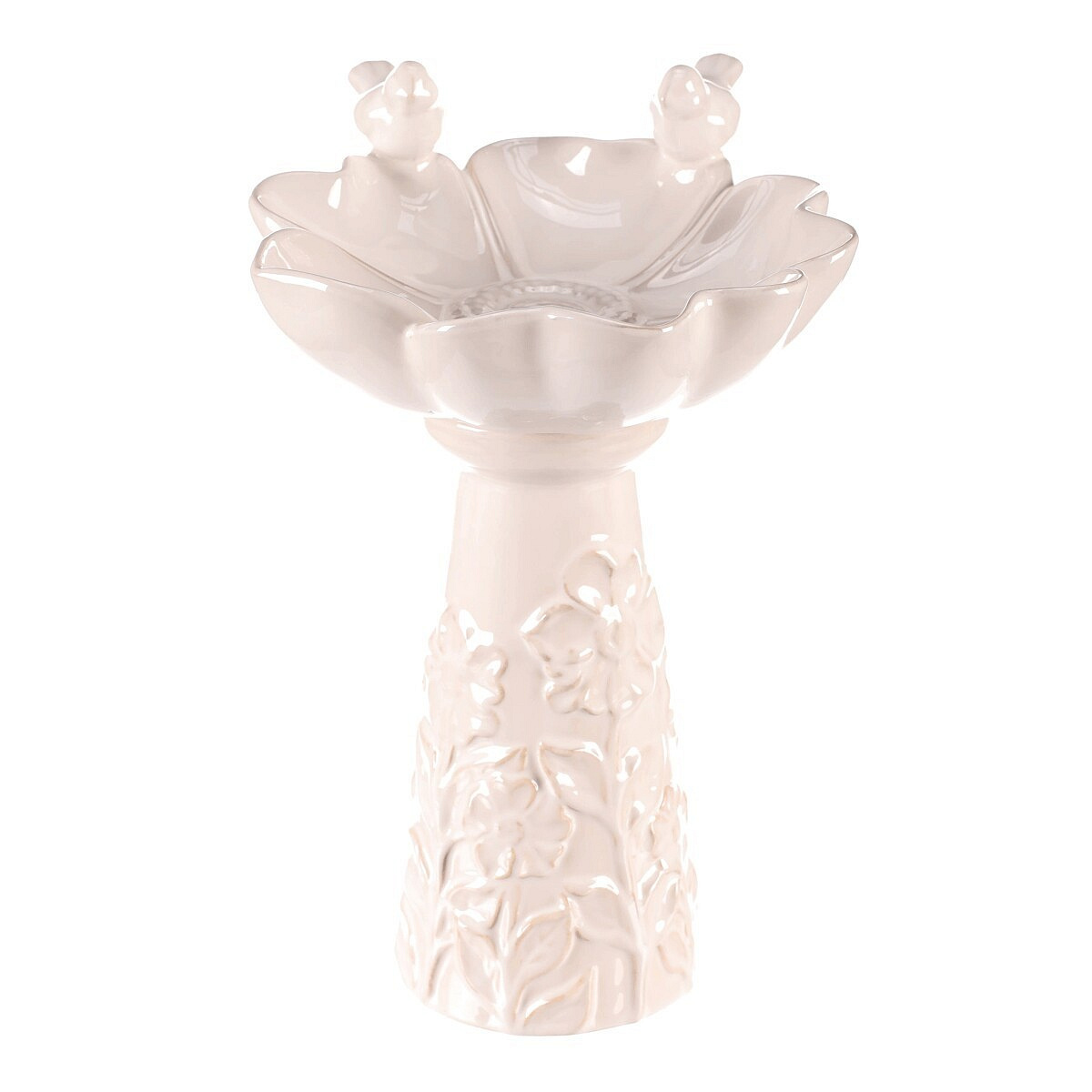 Krmítko/pítko - keramické, květ s ptáčky, stojaté, bílé