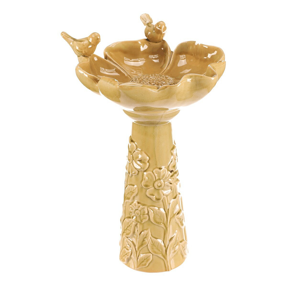 Krmítko/pítko - keramické, květ s ptáčky, stojaté, světle zelené