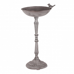 Krmítko/pítko - kovový stojan, s ptáčkem, barva šedá
