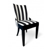 Židle Karmen je výjimečný model pro osoby, které si cení moderního designu. Tkanina v černo-bílé pruhy podtrhuje elegantní charakter židle. \n \nSpecifikace: \n \n– Vysoce pružná HR pěna, \n– Dřevěné nohy. \n \nUvedená cena se vztahuje na 1 ks. židle. Dostupných 6 kusů.